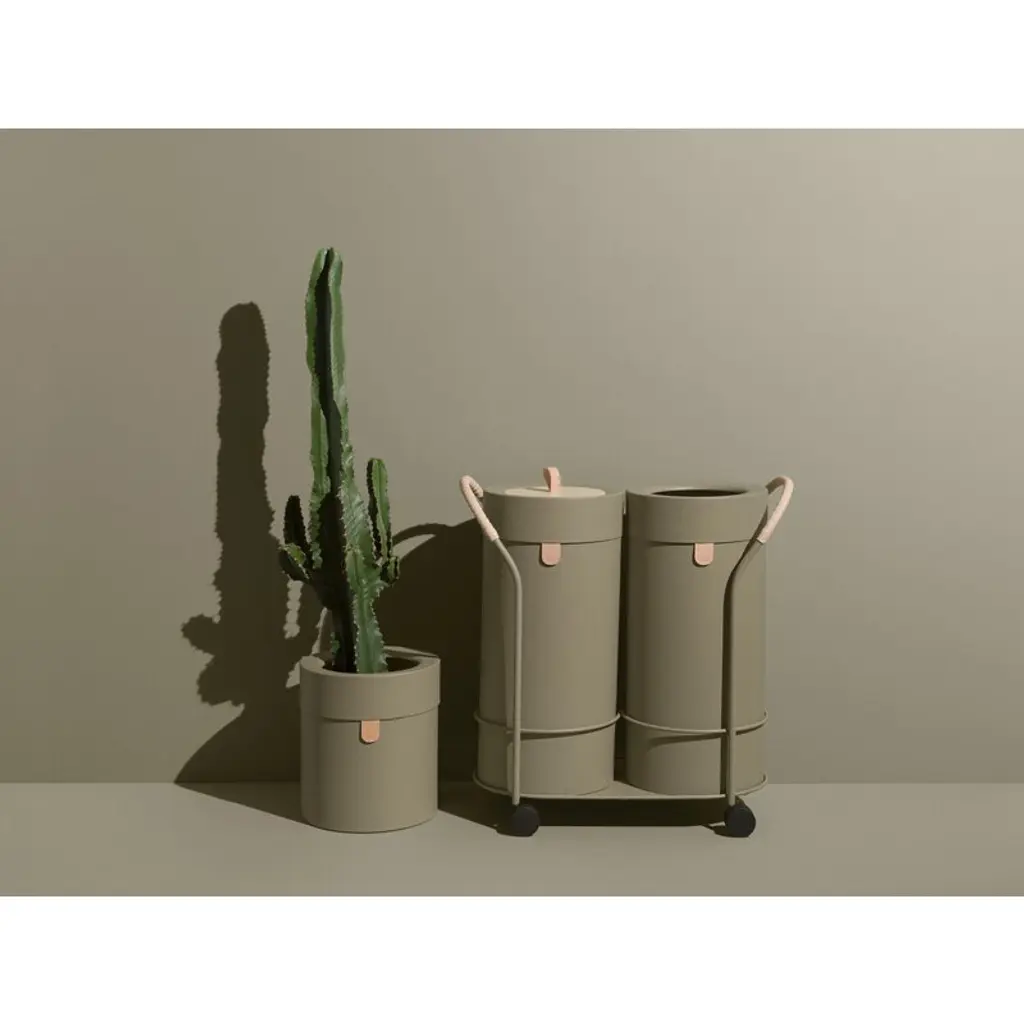 Mizetto's Bin There set is the perfect solution for sorting waste in both the home and the office. The set includes two metal bins with a rough lacquered surface, which collect up to 54 liters of rubbish per recycling bin. The bins stay in place on a chipped metal trolley, finished with leather details and equipped with convenient wheels. Both the Bin There trolley and the bins are available in a range of charming shades – waste management is made much easier when you choose a different color bin for different types of waste! Complete the set with a separately sold airtight wooden lid, which keeps unpleasant waste odors contained within the bin.