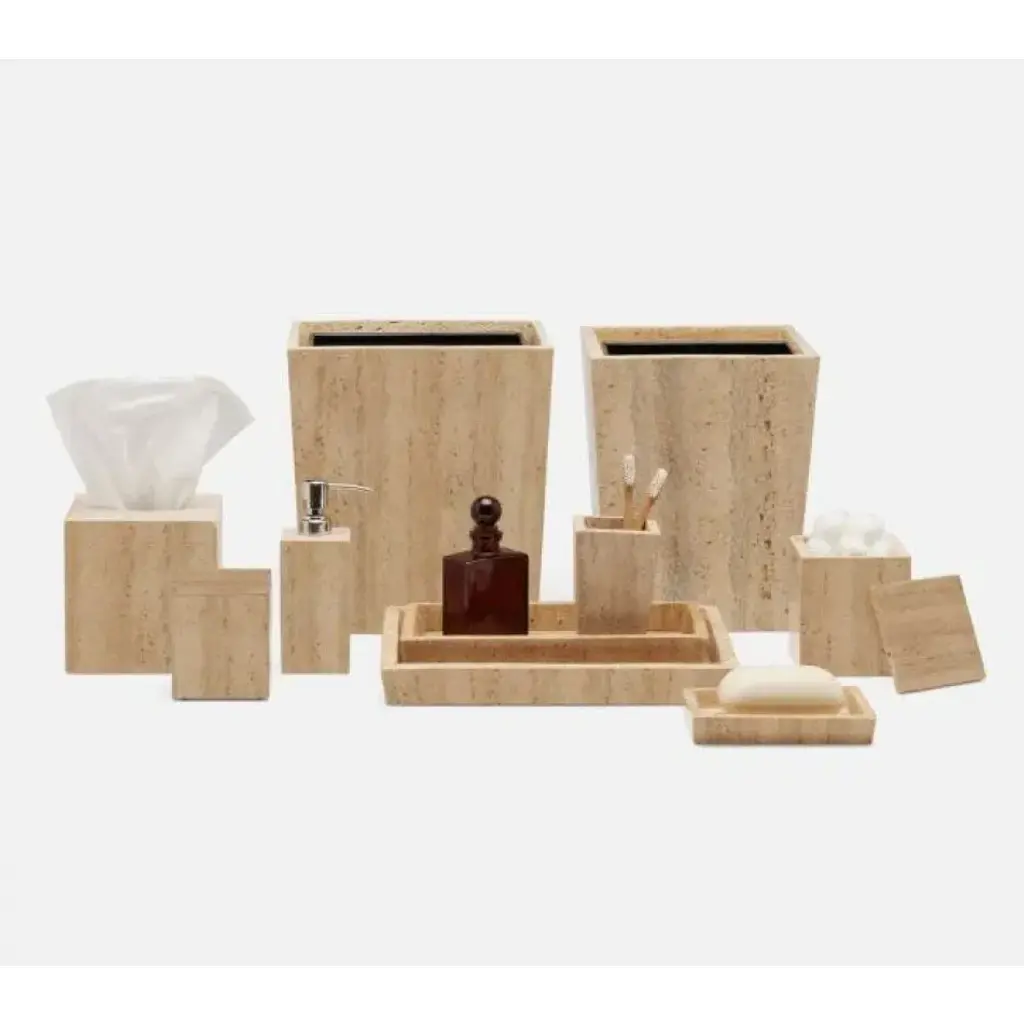 The stone Bowen bath collection celebrates the natural grain and porous texture of travertine material. The stone is filled with clear resin for a smooth finish. The designers at Pigeon & Poodle believe the details of a home are just as important as the furniture. A gorgeous toothbrush holder or handcrafted canister can elevate an entire bath, the perfect frame can heighten the feel of a whole space, and a good-looking storage basket can be your look’s missing link. With thoughtful design and top-notch craftsmanship, Pigeon & Poodle create home accessories with the care and attention typically reserved for larger pieces of décor.