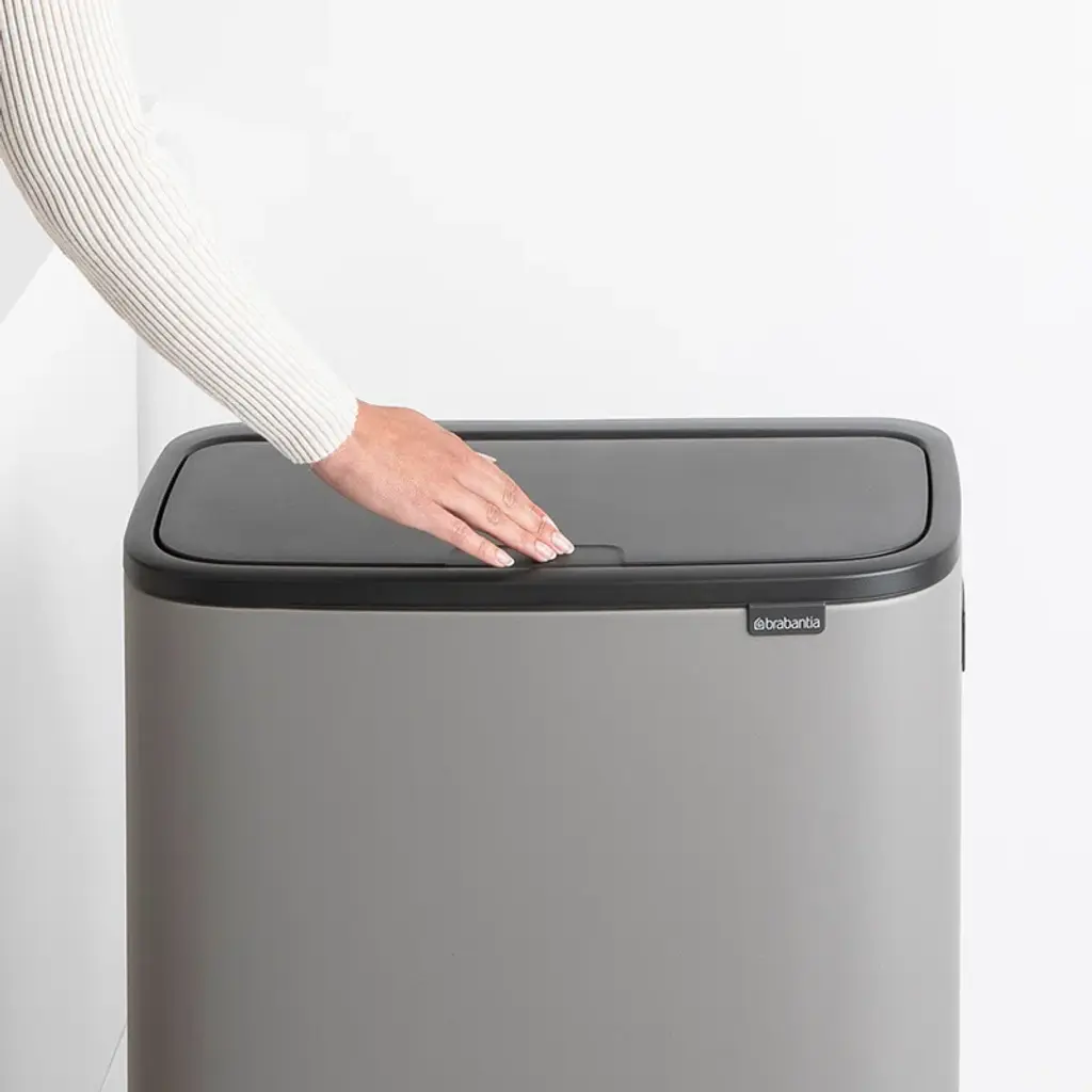 Brabantia Bo Hi Touch Top Dual Compartment Recycling Trash Can, 2 X 8 Gallon (16 Gallon Capacity)