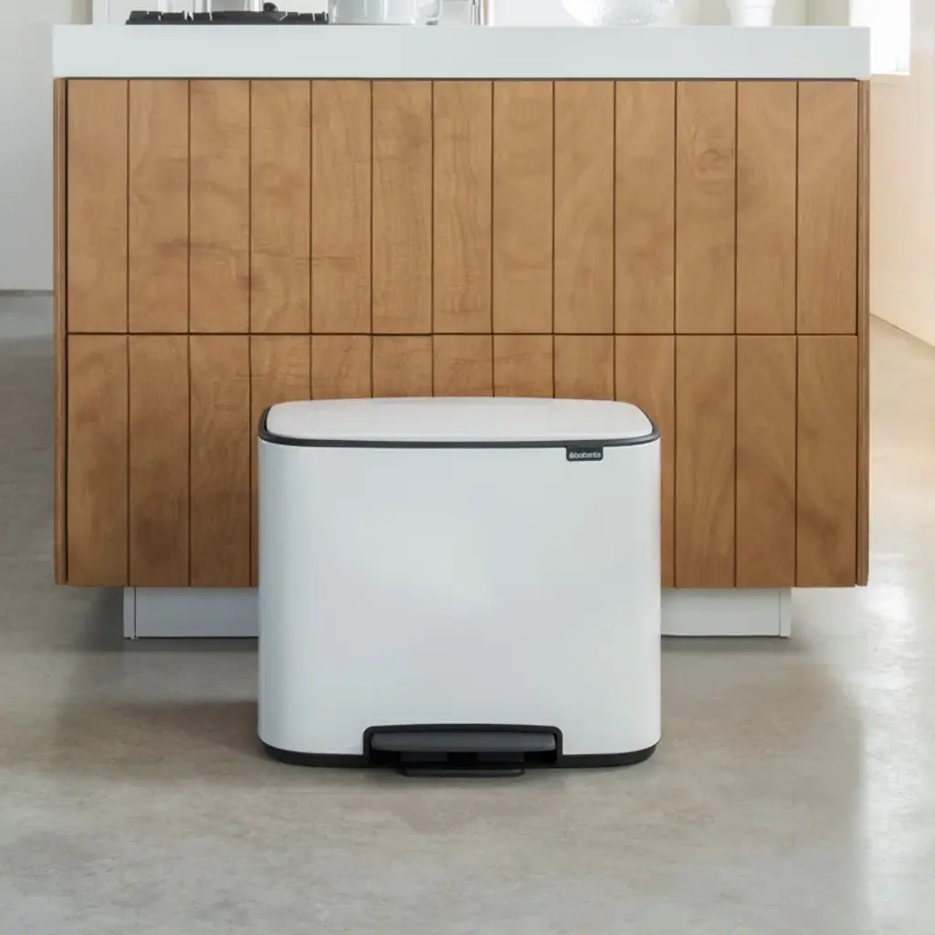 Looking for a beautiful solution for waste separation? This Bo Step Can combine design with all features for easy waste separation at home. It comes with two removable inner buckets for two kinds of waste. It fits perfectly against a wall space-efficient! - the non-skid base protects the floor and keeps the bin steady. Thanks to the unique soft-closure feature, the lid closes quietly, and is it a superlight to operate.