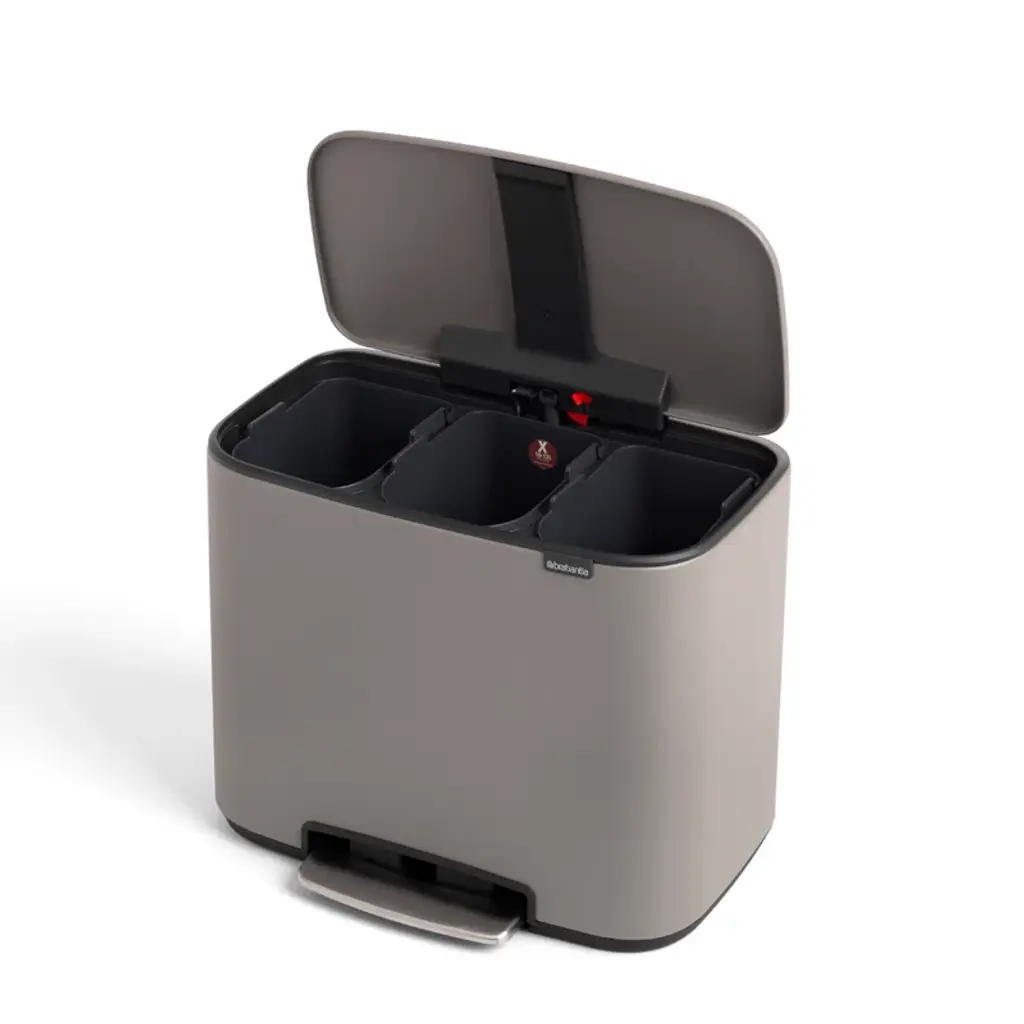 Brabantia Bo Step On Multi-Compartment Recycling Trash Can 3 X 3 Gallon (9 Gallon Capacity)