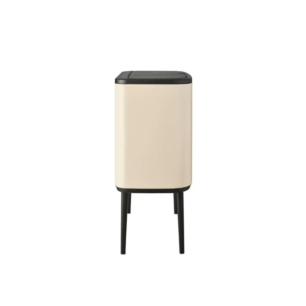 Looking for a beautiful solution for waste separation? This Brabantia Bo Touch Top Dual Compartment Recycling Trash Can, 3 + 6 Gallon (23 + 11 liter) both looks like a piece of furniture and has all you need for easy waste separation. It has two removable inner buckets for two kinds of waste, fits perfectly against a wall, and is very stable thanks to its adjustable non-skid legs. The soft-touch opening makes for easy and light operation at the touch of your hand. Now that's separating in style!