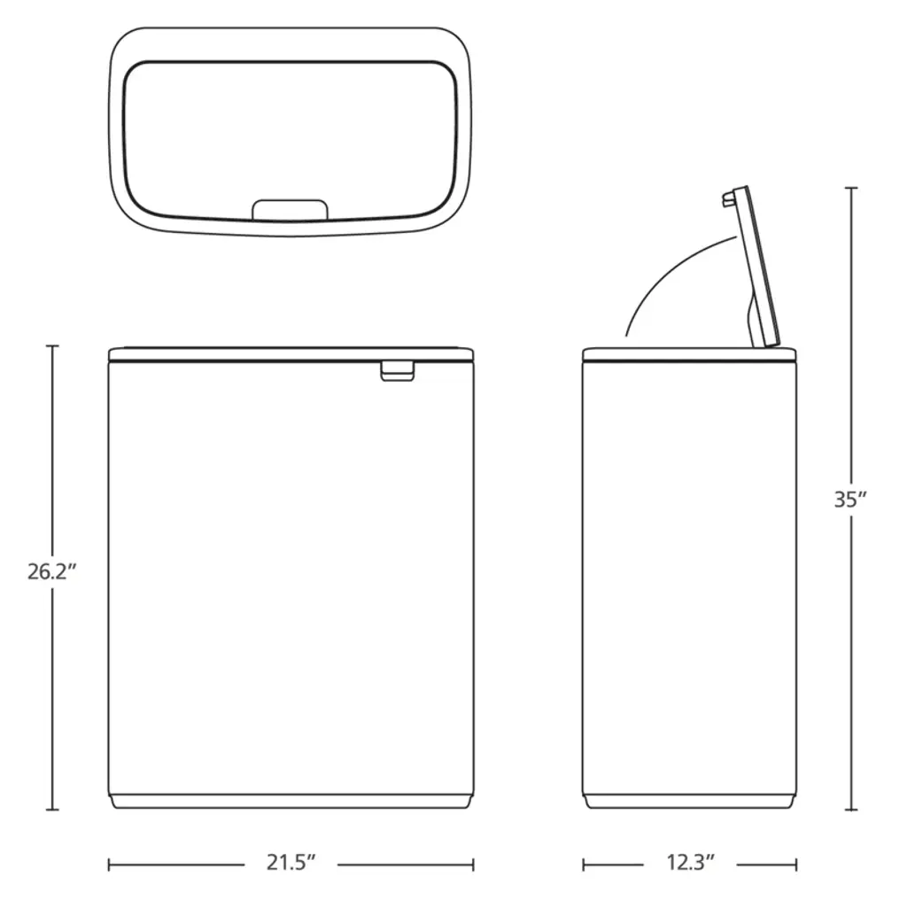 Looking for an XXL waste solution that matches your style? The big Brabantia Bo Touch Top Trash Can, 16 Gallon 60 Liter has good looks and a talent for waste management. It comes with a removable plastic inner bucket and integrated grips. Fitting perfectly against a wall, it is very space-efficient too. Its soft-touch opening makes for easy and light operation at the touch of your hand.