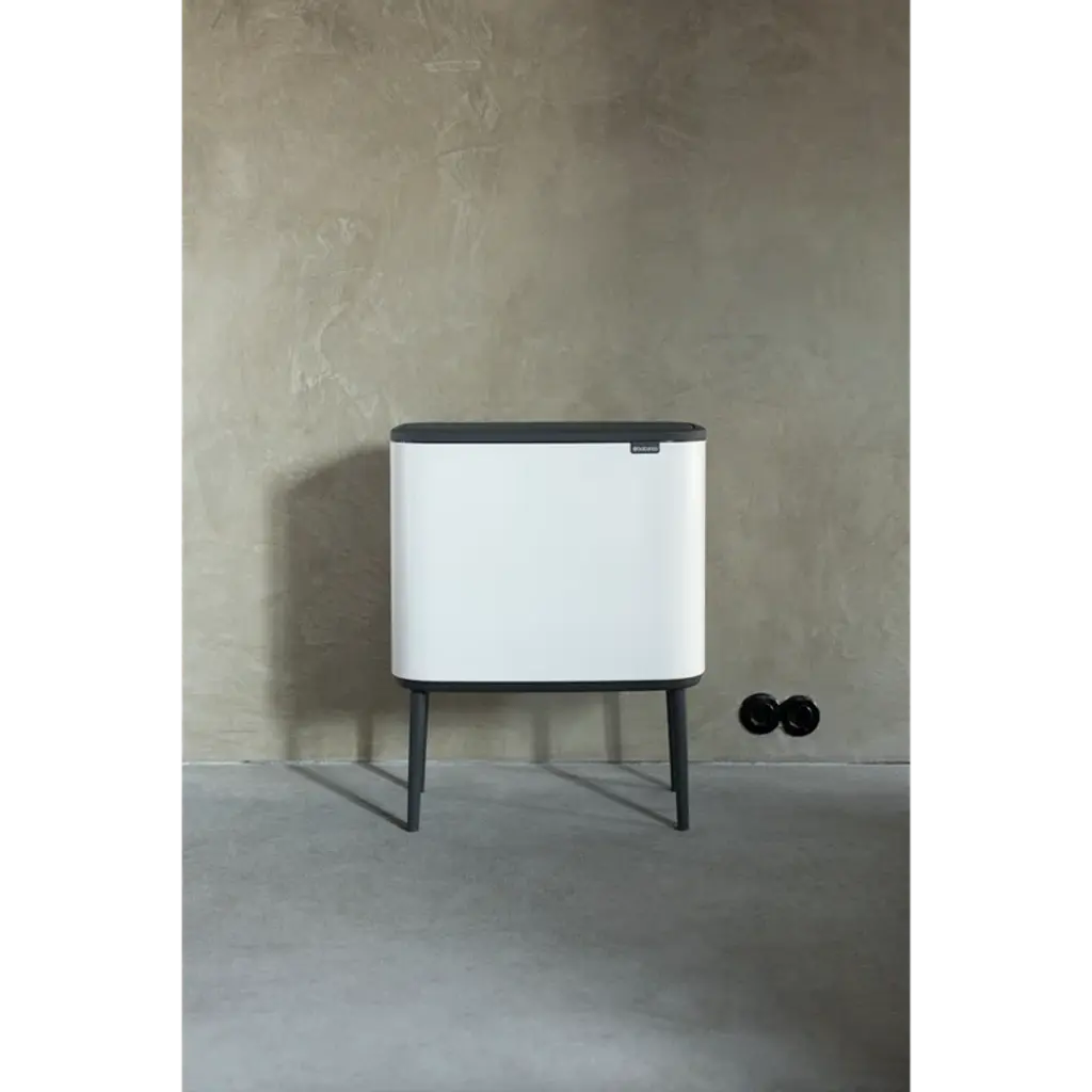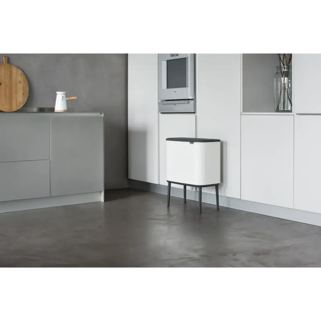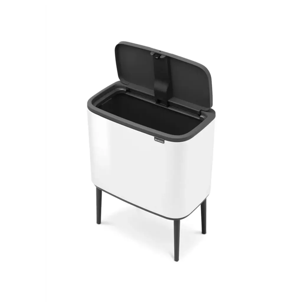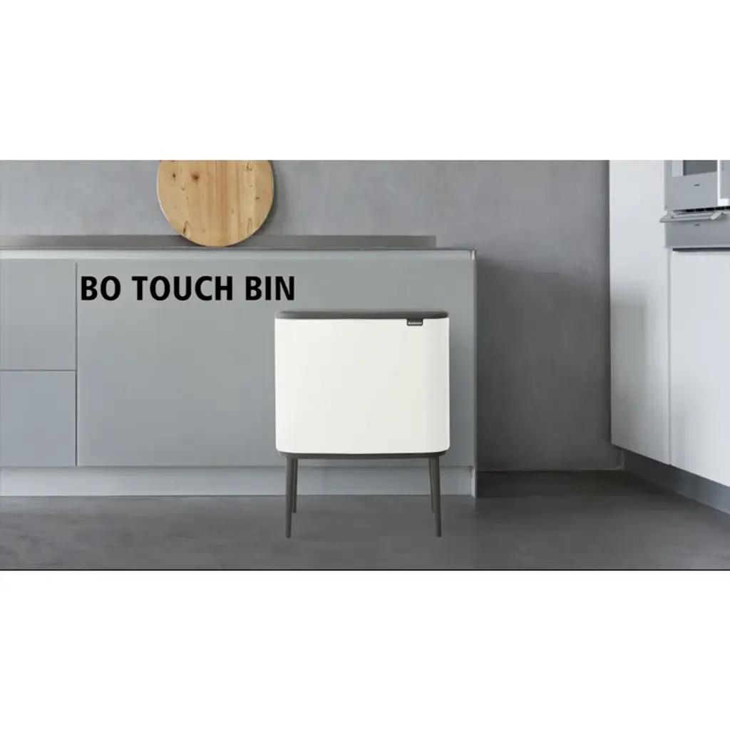 Looking for a waste solution that matches your style? This Brabantia Bo Touch Top Trash Can combines a beautiful design with 9.5 gallons (36 litres) of capacity. It is designed with love for your home and care for our planet. This space-saving can fits perfectly against a wall, and is very stable, thanks to the adjustable non-skid legs. Its unique soft-touch opening makes for easy and light operation at the touch of your hand. Go Bo!