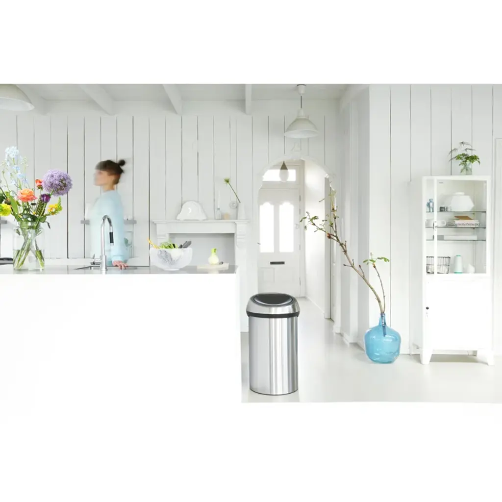 No time to waste? This XXL Brabantia Touch Bin 16 Gallon (60 liter) is a big help in many ways. The lid has a soft-touch opening - easy and light operation at the touch of your fingers. It also has a protection rim and it is big enough to empty a dustpan without spilling. Simply one big plus!