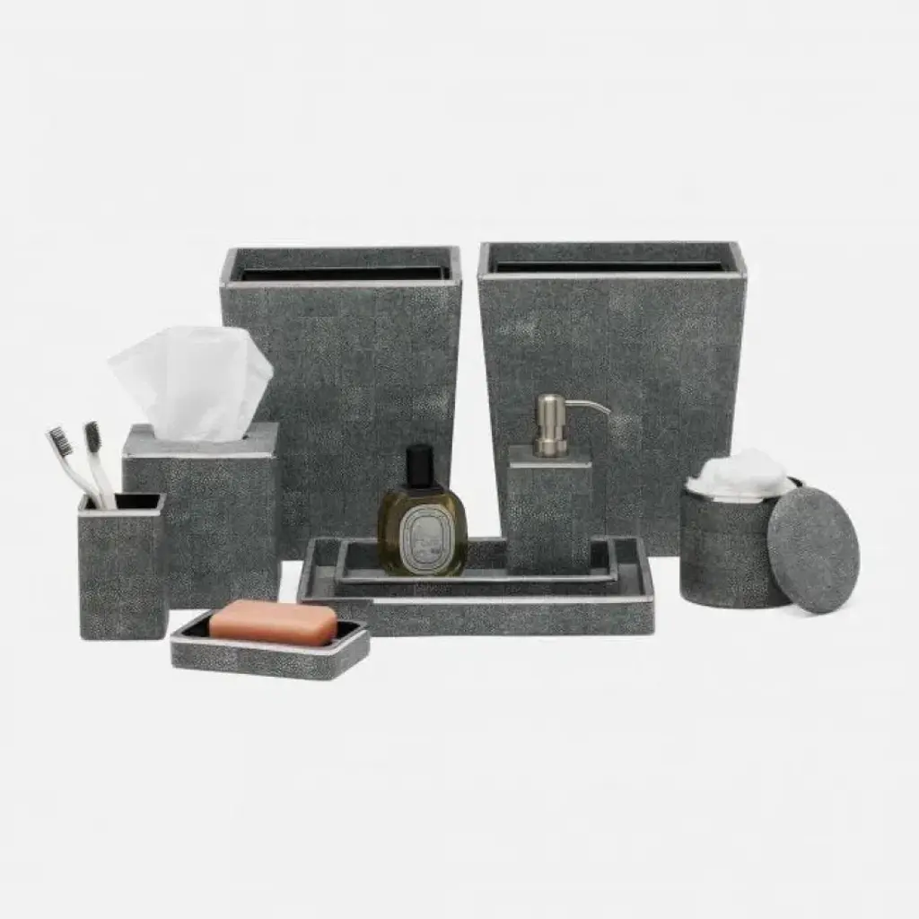 Pairing faux shagreen with delicate gold or silver trim, Bradford elevates the classic bathroom accessory set to peak luxury. The designers at Pigeon & Poodle believe the details of a home are just as important as the furniture. A gorgeous toothbrush holder or handcrafted canister can elevate an entire bath, the perfect frame can heighten the feel of a whole space, and a good-looking storage basket can be your look’s missing link. With thoughtful design and top-notch craftsmanship, Pigeon & Poodle create home accessories with the care and attention typically reserved for larger pieces of décor.