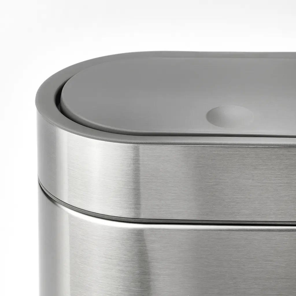 BROGRUND Touch top trash can - stainless steel 1 gallon. You open the trash can easily by pressing lightly on the top of the lid. Easy to keep clean, thanks to the fingerprint-proof surface. The slim design allows the bin to fit into narrow spaces. Handles make it easier to remove the inner bucket.