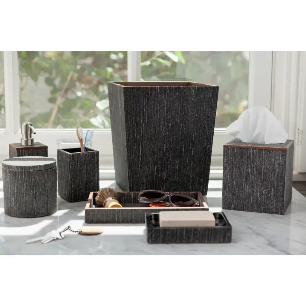 The delicate look of fabric, with the longevity of resin. Our neutral Bruges collection is hand modeled from slubby handloomed silk, adding textural refinement to any bath. Hand-finished with wood trim, the style’s linear pattern is eye-catching on every piece. The designers at Pigeon & Poodle believe the details of a home are just as important as the furniture. A gorgeous toothbrush holder or handcrafted canister can elevate an entire bath, the perfect frame can heighten the feel of a whole space, and a good-looking storage basket can be your look’s missing link. With thoughtful design and top-notch craftsmanship, Pigeon & Poodle create home accessories with the care and attention typically reserved for larger pieces of décor.