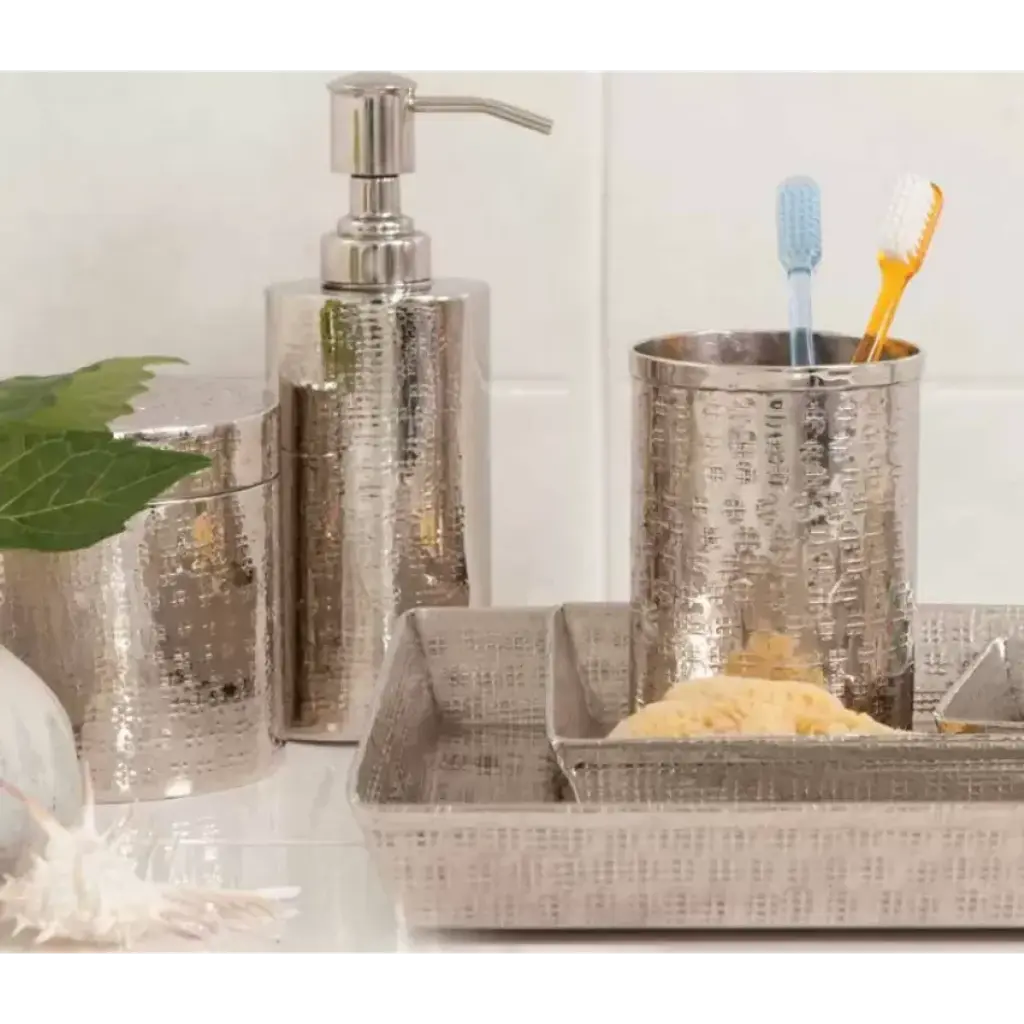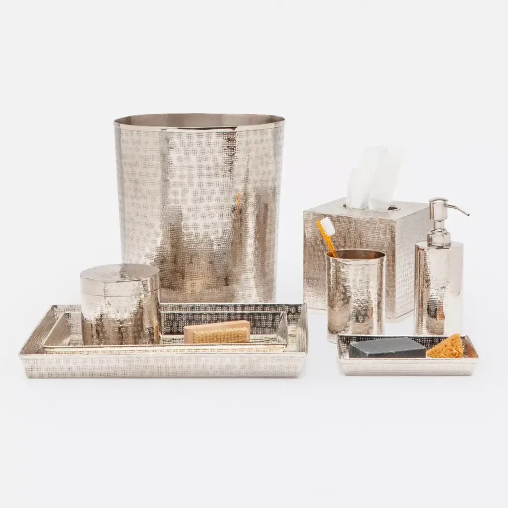 Shine on with our Buren. Textural elements are the stars of this set—an underlying crisscross pattern is covered with a soft overlay of circles, creating an eye-catching look made even more impressive by the hammered nickel finish. Bring some gleam to a clean, modern bath. The designers at Pigeon & Poodle believe the details of a home are just as important as the furniture. A gorgeous toothbrush holder or handcrafted canister can elevate an entire bath, the perfect frame can heighten the feel of a whole space, and a good-looking storage basket can be your look’s missing link. With thoughtful design and top-notch craftsmanship, Pigeon & Poodle create home accessories with the care and attention typically reserved for larger pieces of décor.