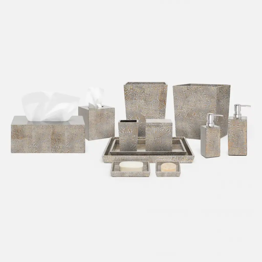 Metallics take the Callas to the next level—our new gold and silver finishes enhance its artisanal allure. Look closely at our Callas and you’ll see that its mosaic-like finish is the result of delicately cracked eggshell, meticulously placed and lacquered over. Clients will appreciate the ancient Asian technique. The designers at Pigeon & Poodle believe the details of a home are just as important as the furniture. A gorgeous toothbrush holder or handcrafted canister can elevate an entire bath, the perfect frame can heighten the feel of a whole space, and a good-looking storage basket can be your look’s missing link. With thoughtful design and top-notch craftsmanship, Pigeon & Poodle create home accessories with the care and attention typically reserved for larger pieces of décor.