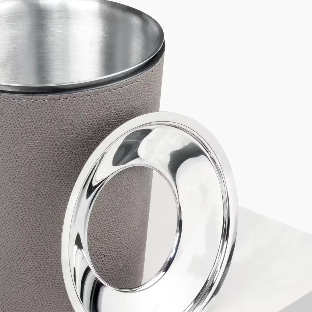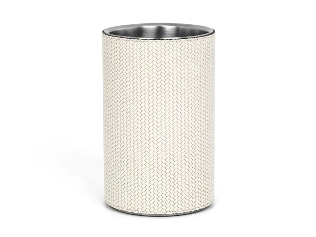 This elegant waste bin is a portable and stylish addition to a contemporary desk and can be combined with the Firenze series for a sleek and cohesive look. Its versatility allows it to be used as a discreet way to dispose of small waste during a party or in an entryway. The stainless steel cylinder has deeply beveled edges elegantly upholstered with a removable white leather cover.