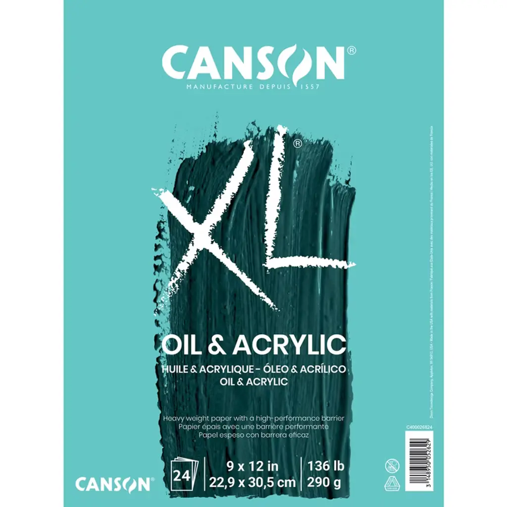 Canson XL Series Oil & Acrylic Pad, Foldover Binding, 24 Sheet, 9x12 inch, Pack of 2 | The Canson XL range was specifically developed to meet the needs of art students -- high sheet counts, various textures and weights, and sturdy binding at an affordable price. Students can explore their personal tastes and techniques across drawing, paint, and mixed media art forms. Artists often carry their love of XL after their coursework is complete and throughout their professional careers - it's hard to find a creative who doesn't have a Canson XL pad within arm's reach! Sold as a pack of 2.