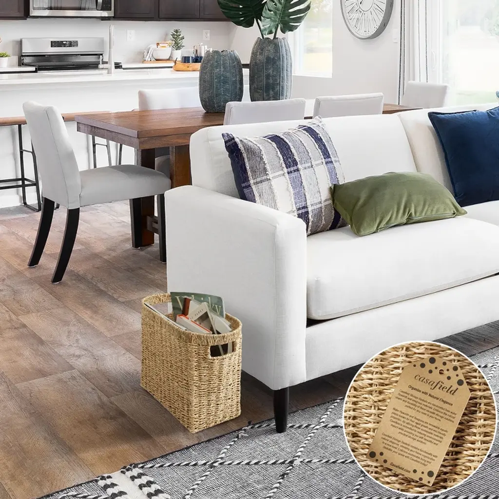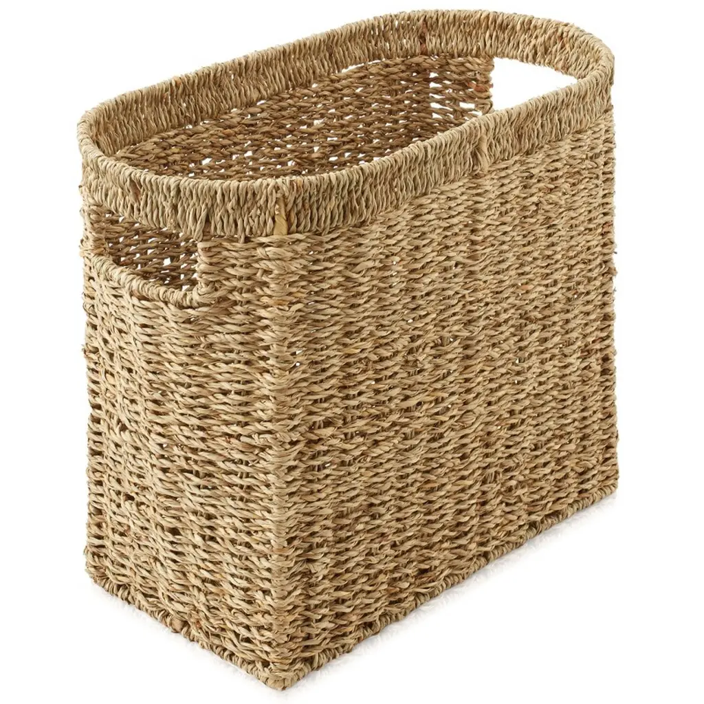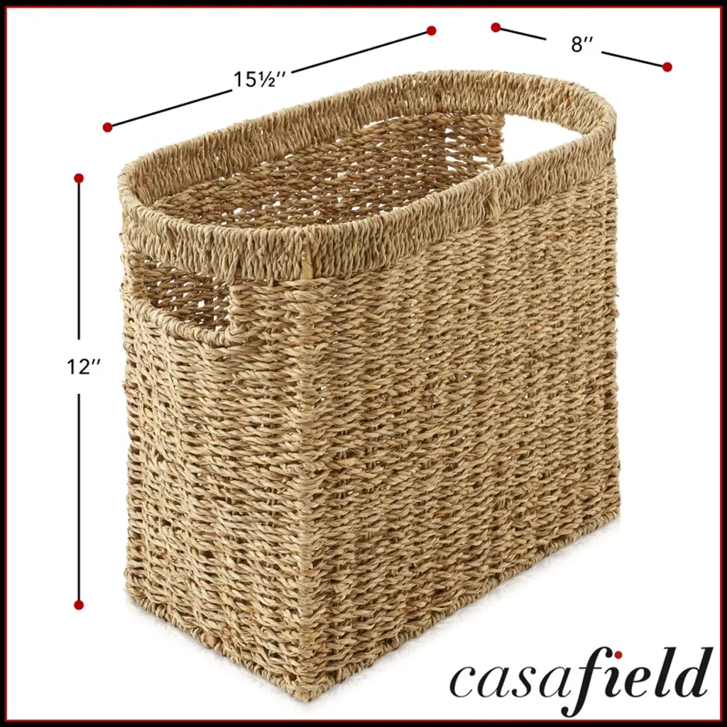 Casafield Magazine Holder Basket With Handles - Oval Seagrass Storage Bin For Bathroom, Home Office