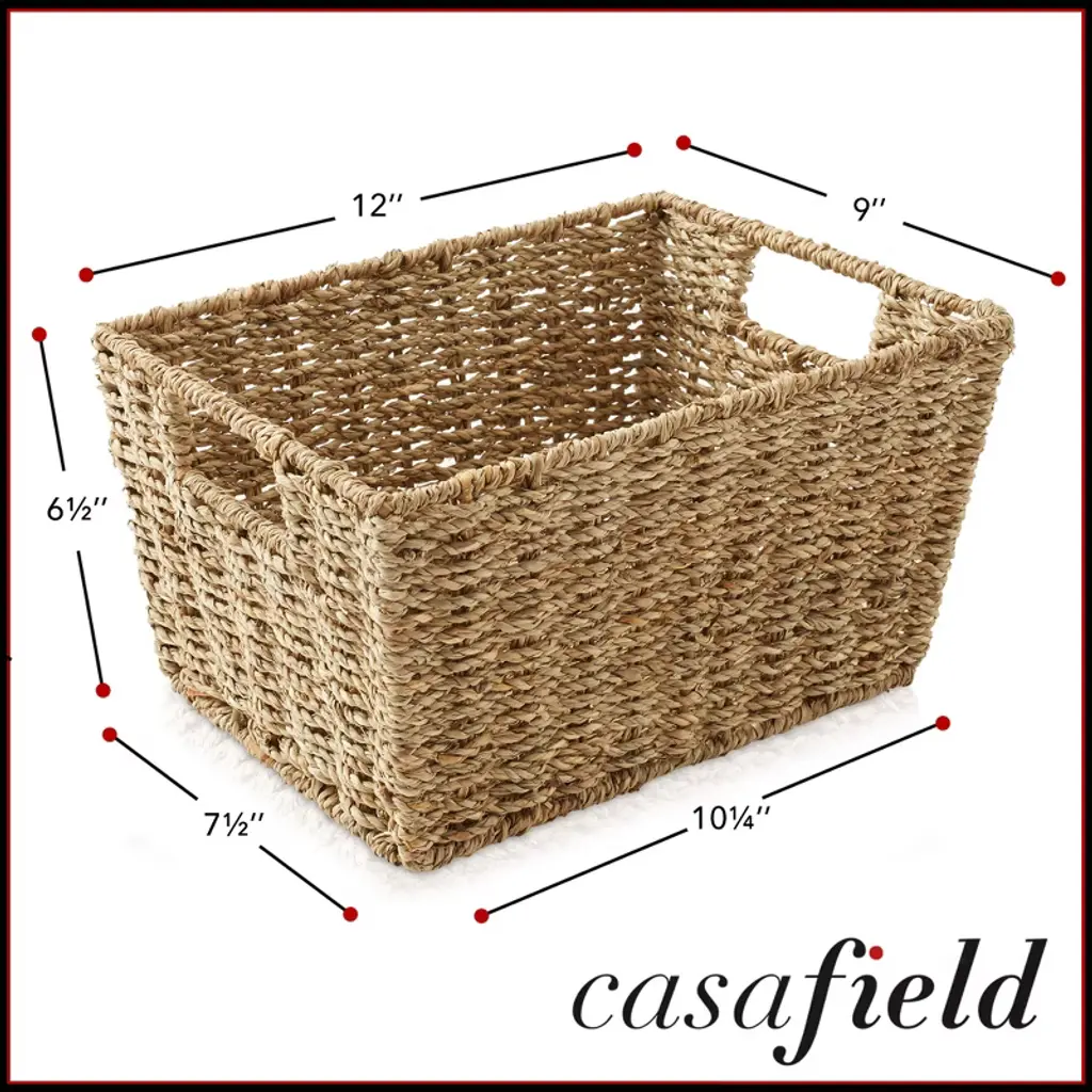 These seagrass or water hyacinth storage baskets are the perfect combination of functionality, style, and sustainability for your home organization needs. Instantly organize your kitchen shelves and pantry, bathroom, laundry room, and more with Casafield's rectangular storage baskets. These versatile storage bins are handwoven with eco-friendly water hyacinth or seagrass materials and feature handles on both sides for easy access.