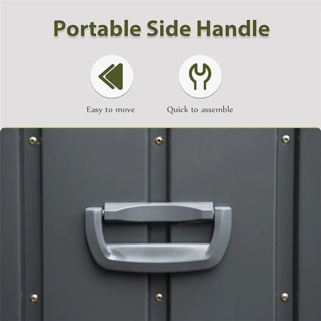 A heavy-duty 100-gallon outdoor storage box crafted from waterproof galvanized steel, designed to securely store patio cushions, pool accessories, and outdoor supplies while resisting weather, pests, and UV damage. With a 440-lb weight capacity and dual-function design, it doubles as a sturdy table or stool.