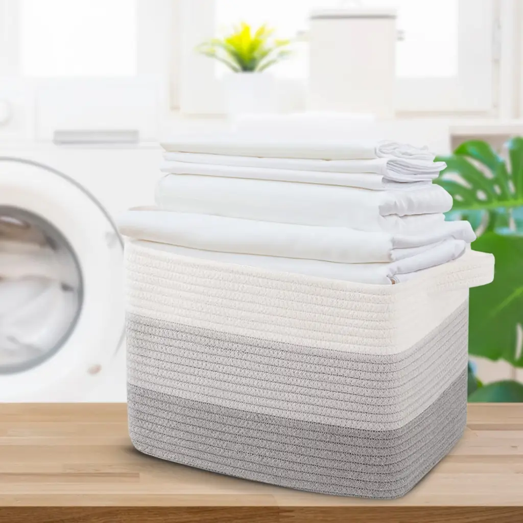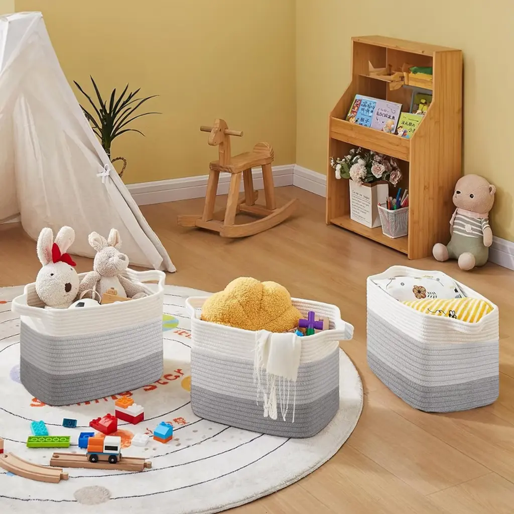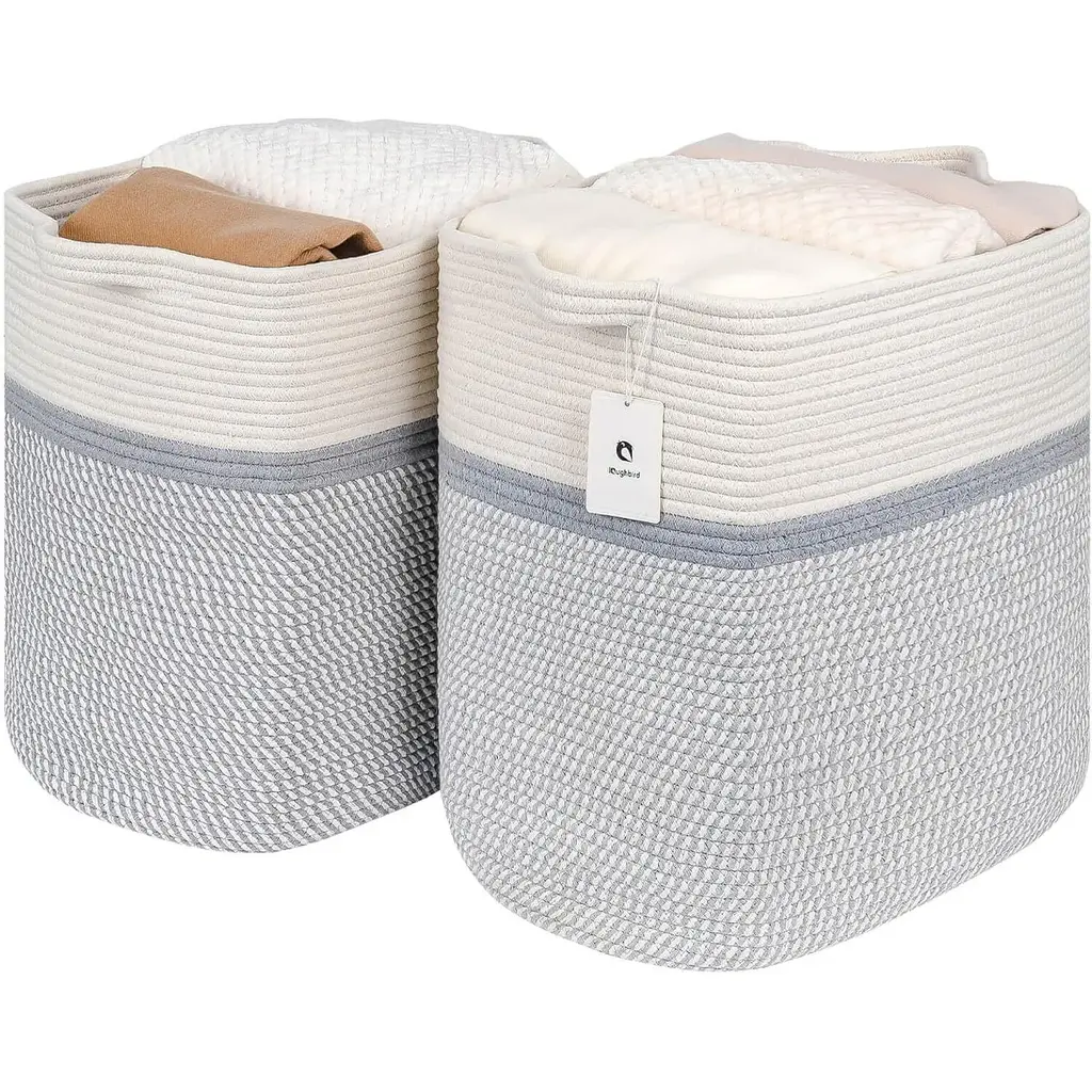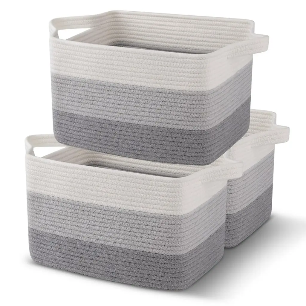 Cheer Collection Cotton Rope Storage Baskets – Set Of 3 Durable Woven Bins For Laundry, Toys, Towels In Gray For Home Organizing