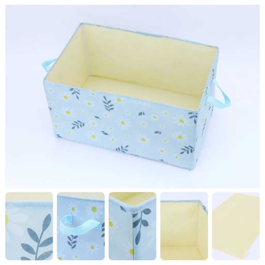 Chrysanthemum Storage Cube With Handles, Collapsible Fabric Storage Bins For Shelves Closet, 1 Pack Storage Basket For Clothes - Blue - 18*12*8in