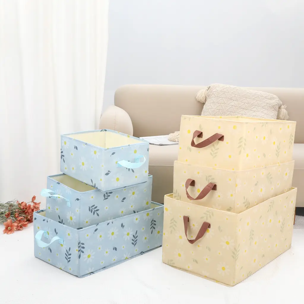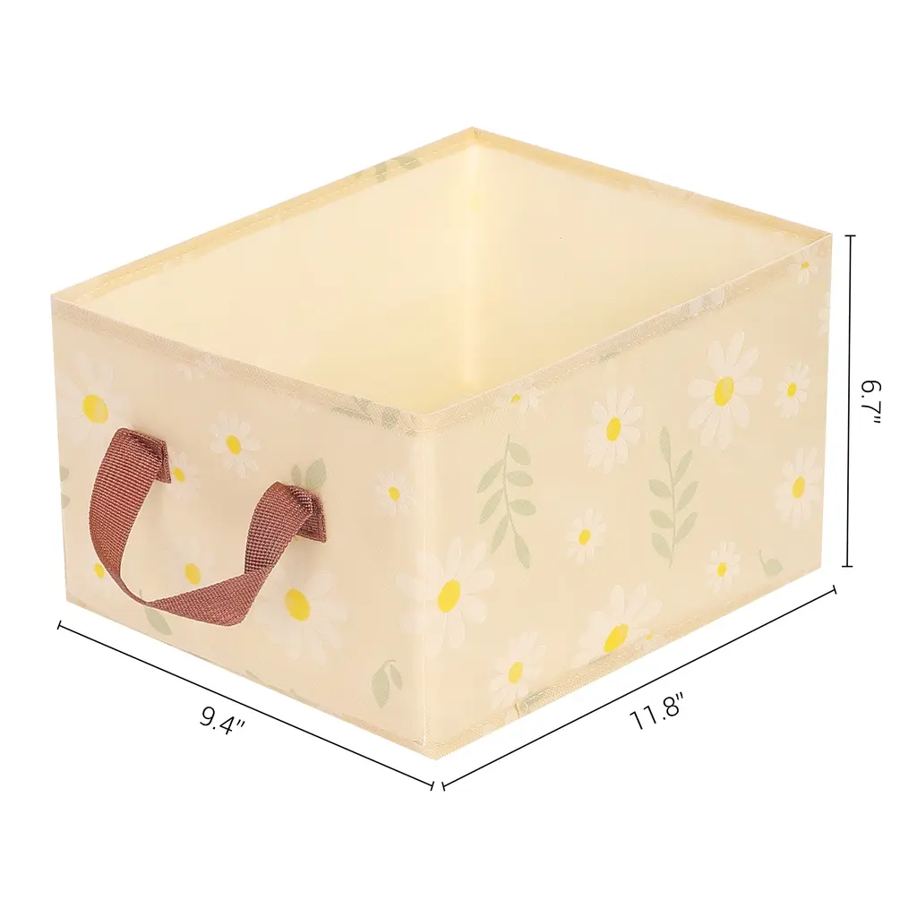 Chrysanthemum Storage Cube With Handles, Collapsible Fabric Storage Bins For Shelves Closet, 1 Pack Storage Basket For Clothes - Yellow - 16*9*8in
