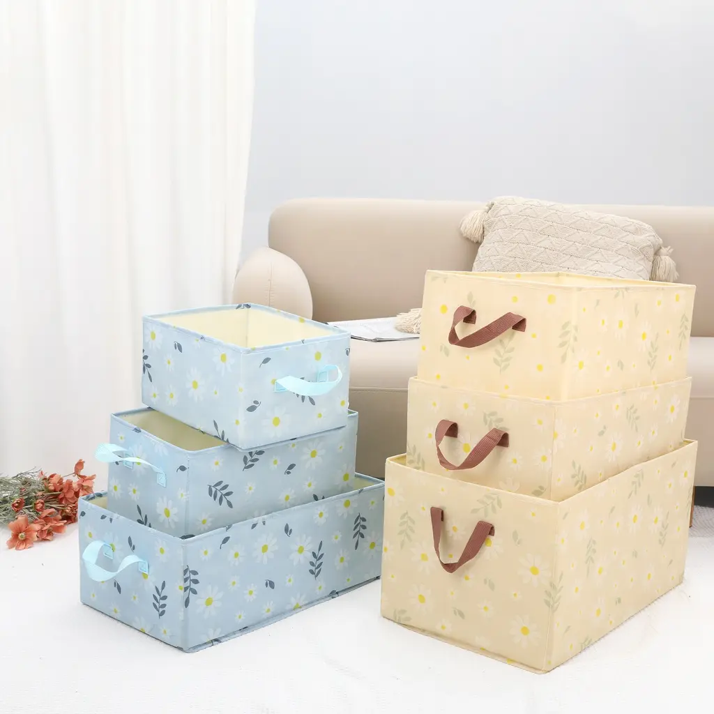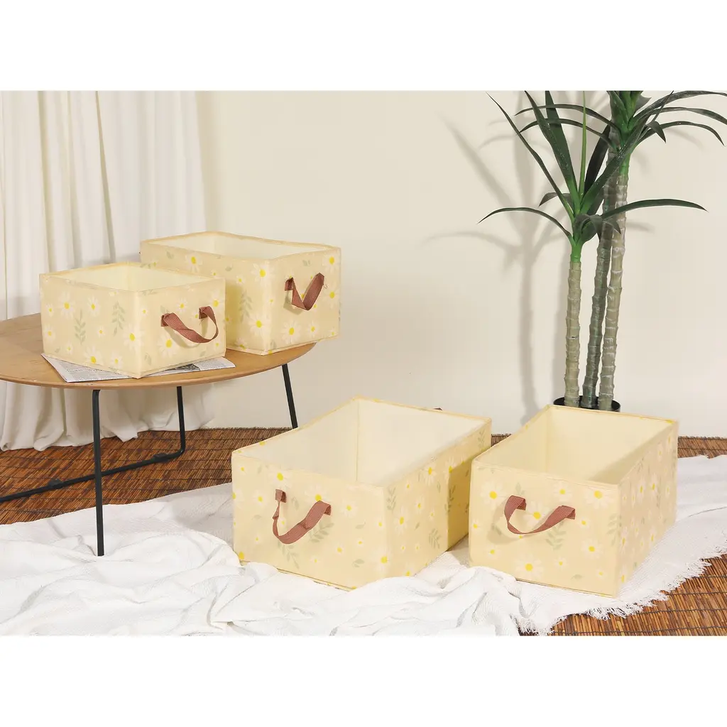 Chrysanthemum Storage Cube With Handles, Collapsible Fabric Storage Bins For Shelves Closet, 1 Pack Storage Basket For Clothes - Yellow - 22*14*12in