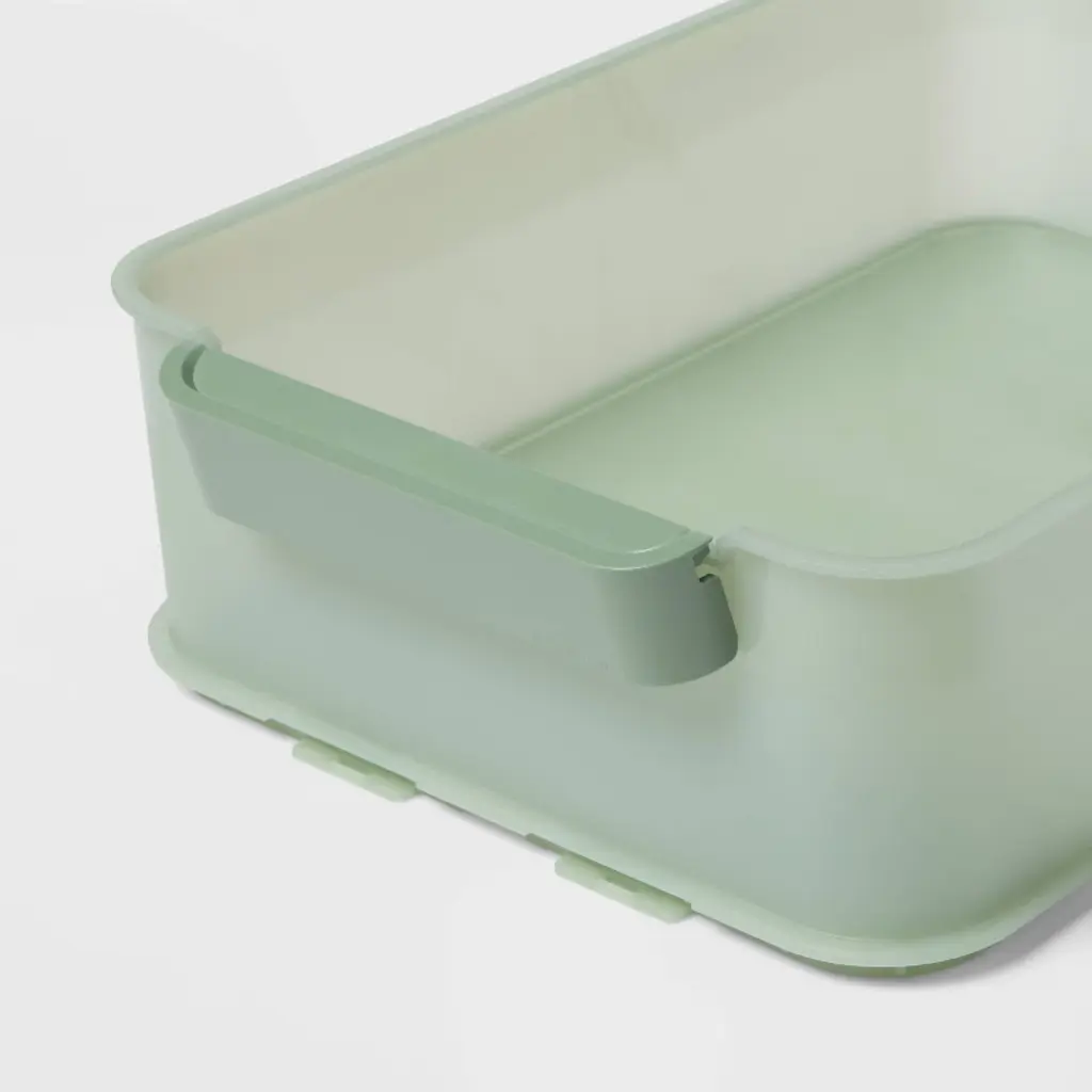 Get your home stylishly organized with this 10-Quart Bin from Brightroom™. Featuring a stackable design for compact spaces, this polypropylene bin features a spacious design for storing anything from files to books to everyday necessities and beyond. The open top allows easy access to the contents, and side latches help keep the content safe. Designed in a rectangular shape, this storage bin is green and has a capacity of 10 quarts for ample storage.Brightroom™: See your space in a new light.