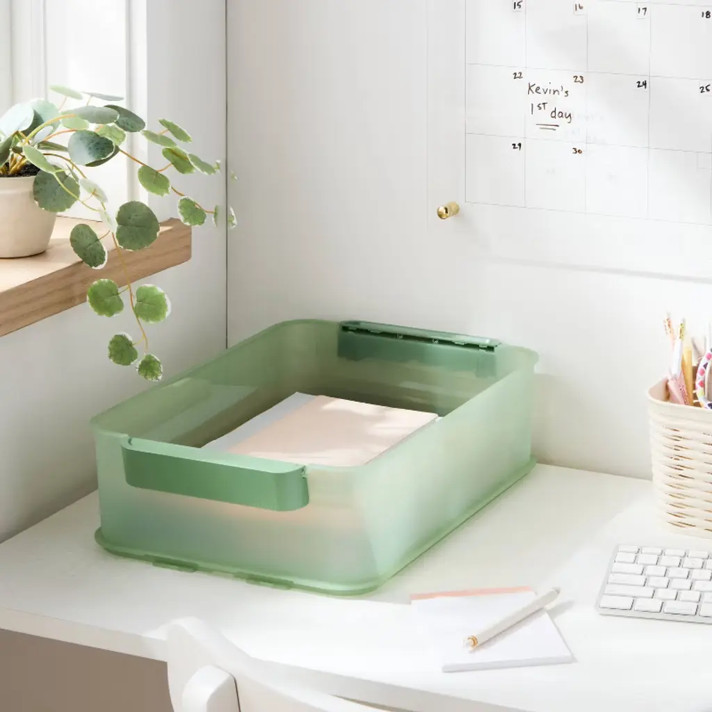 Click In Place 10qt Plastic Storage Bin For Home And Office Organization Green Tint - Brightroom™