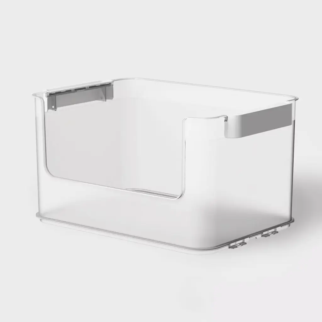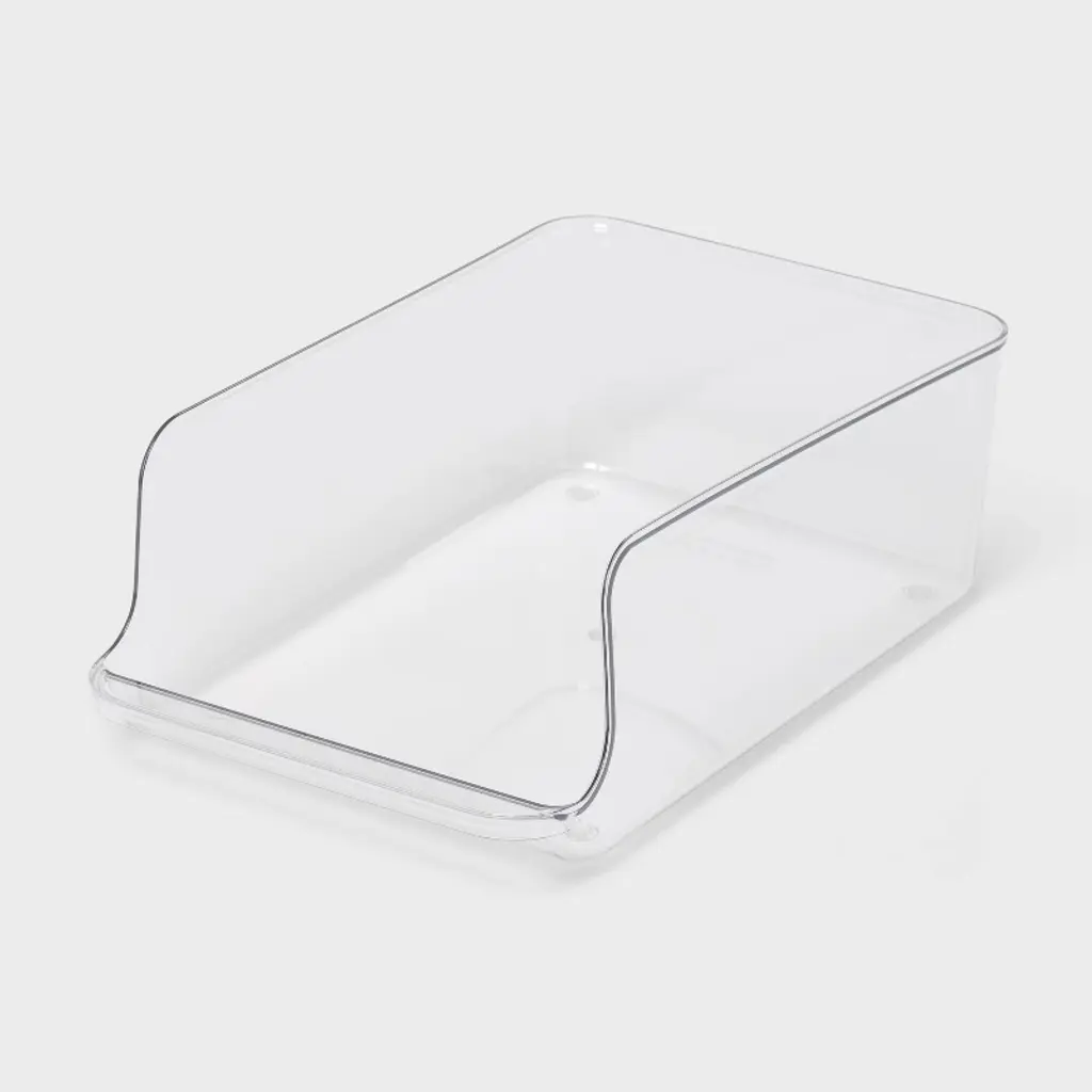 Declutter your home space in sleek style with this 20.7-Quart Open Front Bin from Brightroom™. This storage bin features a spacious silhouette for storing anything from toys to books and beyond. The open front allows easy access to the contents, while the clear construction allows easy identification of the contents from the outside. Plus, the two side integrated handles make carrying it a breeze. Brightroom™: See your space in a new light.