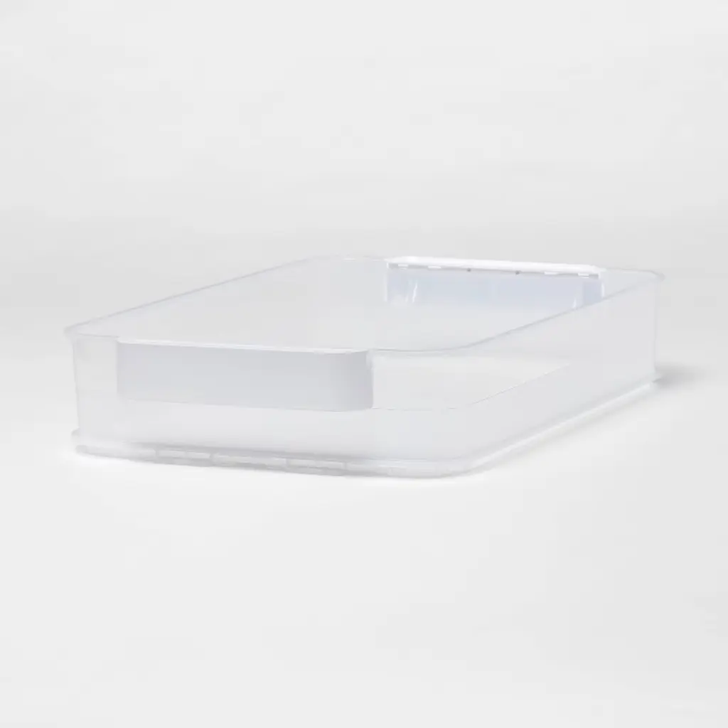 Click In Place 3Qt Clear Shallow Slim Plastic Storage Bin With White Latch For Home And Office Organization - Brightroom™