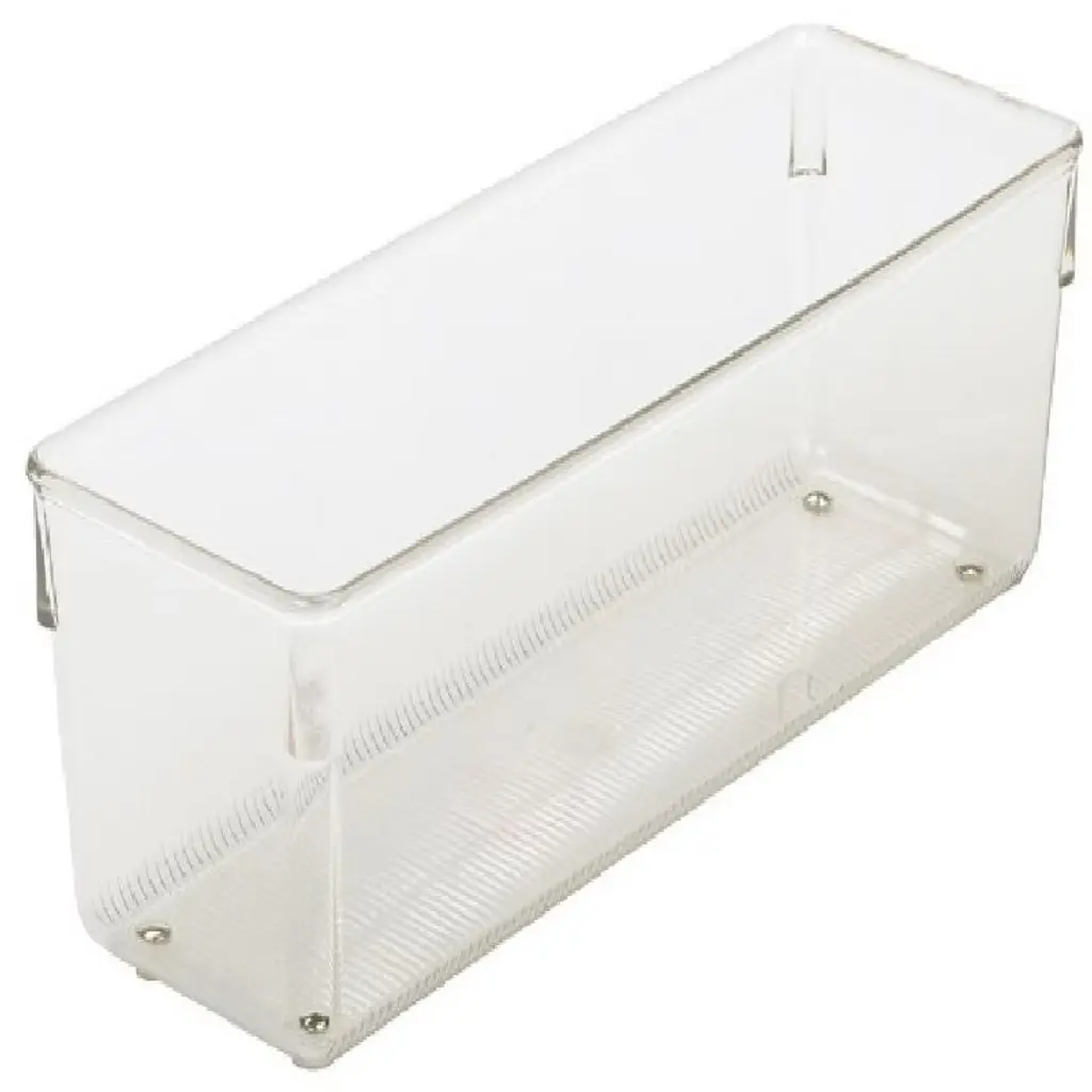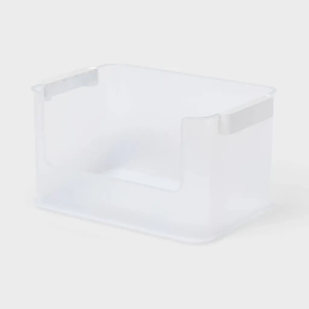 Bring order to closets, study tables, and craft rooms with this 3 Quart Shallow Slim Bin from Brightroom™. Featuring a stackable design for compact spaces, this transparent shallow bin lets you easily see what you've stored inside. Designed in a slim shape, this storage box comes with two side integrated handles for easy carrying around, and it has a capacity of 3 quarts for ample storage.Brightroom™: See your space in a new light.