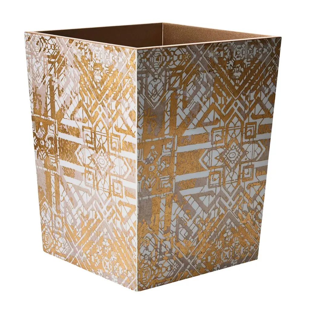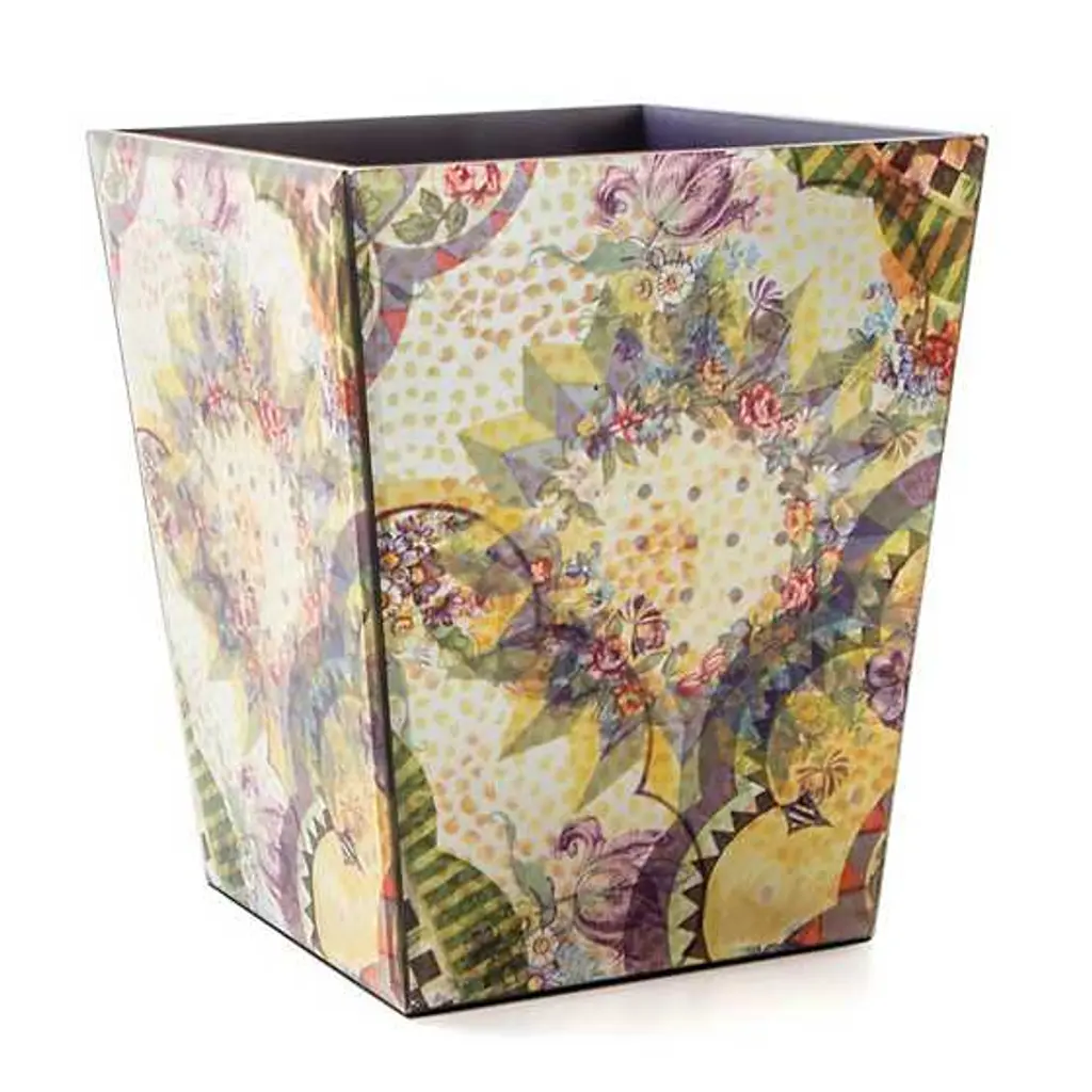 Make any room pretty with this waste bin, featuring an opalescent print of our legacy napkin patterns under glass, finished with beveled edges.