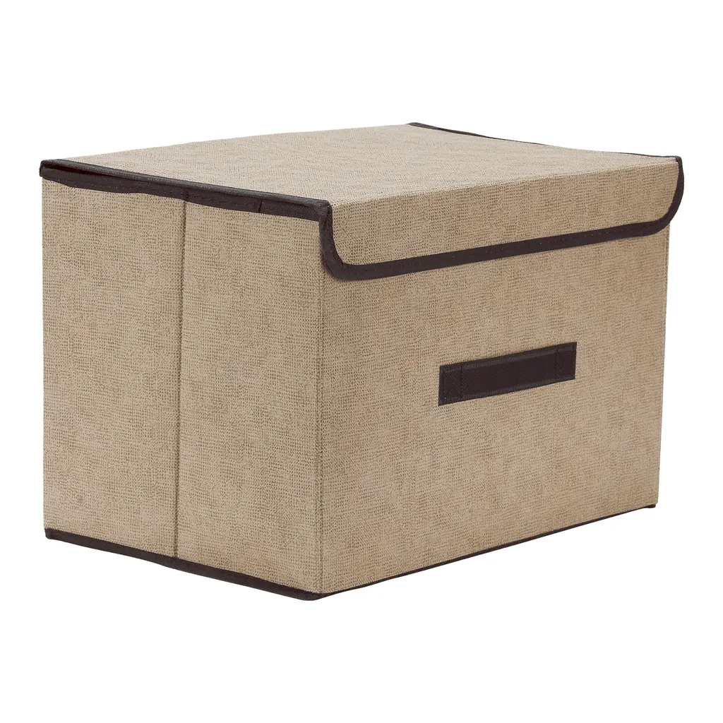 Collapsible Fabric Storage Bin Basket With Lid And Handle, Storage Cube For Shelves Closet Organizing Clothes Books - Off-White - 10*7.5*6in