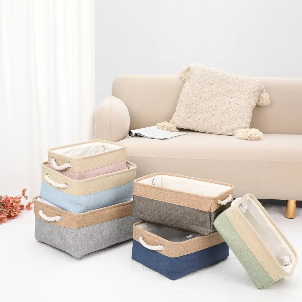 Premium Material: The cube storage organizer is made from good quality fabric and reinforced with a sturdy rope handle. The solid construction enables the shelf storage bins to stand upright without support, even when emptyCollapsible Design: The storage box can be folded flat when not in use to save space or transport. The large blanket basket for organizing various items, including clothing, towels, blankets, pet supplies, books, magazines, albums, DVDs, office and craft supplies, etcSpacious Capacity: Our organization bin enables you to store a wide variety of items to keep your home tidy and organizedEasy To Care: The large cube organizer is sturdy and has no odor and they are not machine washable. Lined with a thin linen fabric, linen closet organizer and storage is easy to clean, just wipe it with a damp sponge or clothVersatile Use Cubby Bin: Use the collapsible storage bin in the room, playroom, laundry area, closet, storage room, etc. Sit cube organizer bin on the floor, in the closet, bookcase, desk, shelving area, cubbies, and collage dorm room, classroom decor and towel organizerOur baskets provide attractive, lightweight solutions for all your storage and organization needs while keeping household items tidy and organized - Complete storage basket, closet organizers, nurseries, and more.These fabric storage bins are easy to carry or remove on a shelf. They could work well as drawers, open-top bins, or storage baskets for shelves.