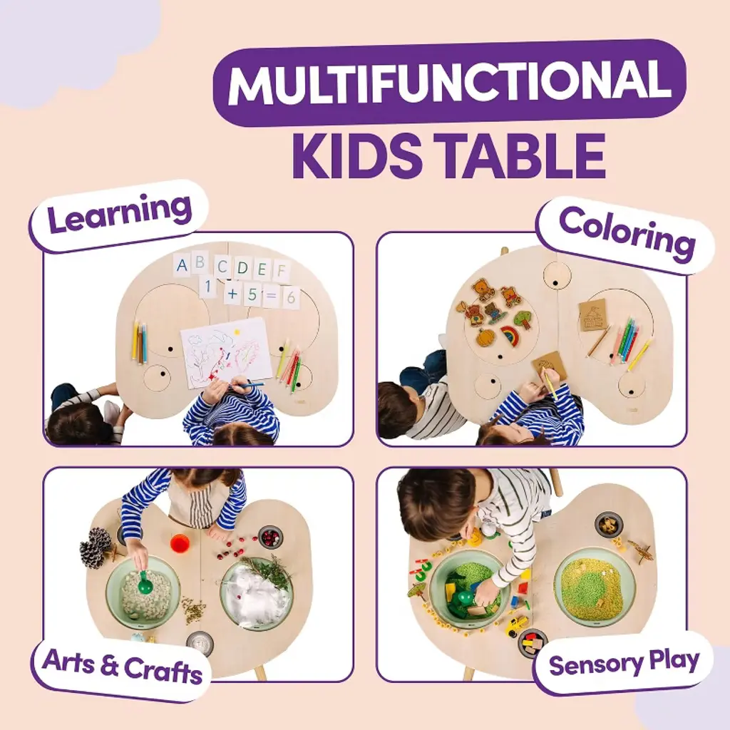 Unleash your child's creativity with ComfyBumpy Sensory Sensory Table for Toddlers! This engaging sensory bin table is designed to provide endless fun for little ones, encouraging exploration and play. Perfect for both indoor play and outdoor play, this toddler sensory table features two spacious bins ideal for sand, water, or sensory materials. Watch as your kids immerse themselves in imaginative activities, from building sandcastles to splashing water. This kids sensory table promotes fine motor skills and sensory development, making it an essential addition to any kids room. Crafted with durable materials, it's easy to clean and built to withstand years of play. Whether you're looking for a unique gift for boys and girls or a fantastic addition to playrooms, daycares, or preschools, this sensory table is sure to delight! Give your child the gift of discovery and joy with our Sensory Table today!