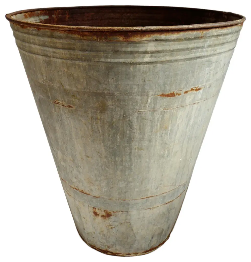 Consigned impressive large vintage French farm bins. Attractive aged galvanized finish with light rust areas. Great condition and wonderful for display and use indoors or out. This item is non-returnable - all sales are final.Condition: Great, with signs of age and useOrigin: FranceEra: Mid 1900''s