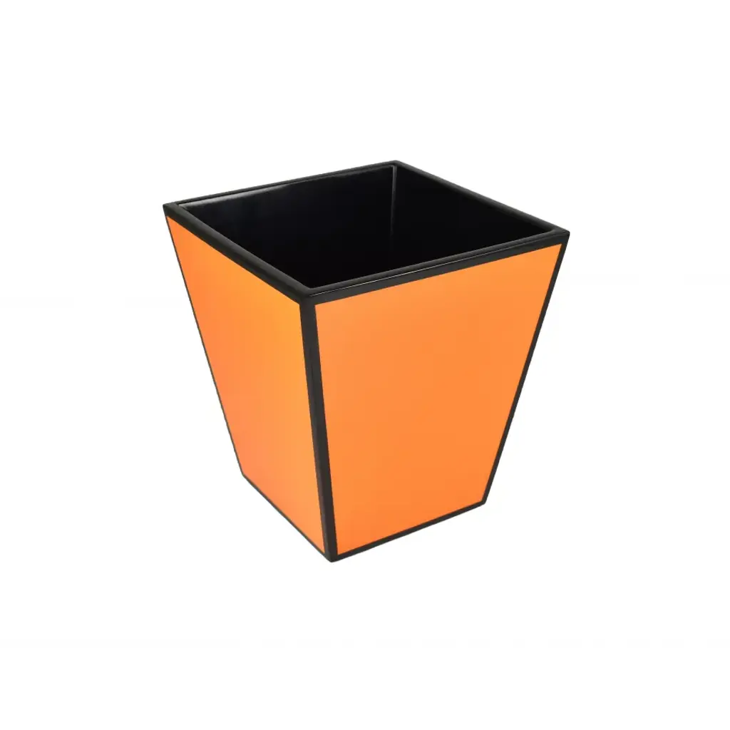 - Handcrafted wastebasket made of wood and bone from Colombia. - The coral finish is contrasted by ivory border and further accentuated by a high-gloss lacquer finish.
