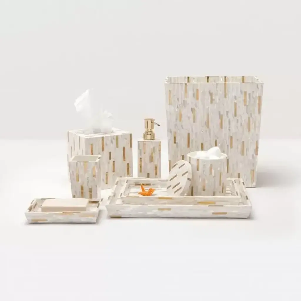 Get splendidly shell-shocked. Add some understated glamour with the Cortona’s sparkle. Clamstone and troca shells bring the offset pattern’s shimmer while metal rods add the shine. Add some understated glamour with the Cortona’s sparkle. Clamstone and troca shells show the offset pattern’s shimmer while metal rods add the shine. Go with brass to warm up a space, or cool it down with silver The designers at Pigeon & Poodle believe the details of a home are just as important as the furniture. A gorgeous toothbrush holder or handcrafted canister can elevate an entire bath, the perfect frame can heighten the feel of a whole space, and a good-looking storage basket can be your look’s missing link. With thoughtful design and top-notch craftsmanship, Pigeon & Poodle create home accessories with the care and attention typically reserved for larger pieces of décor.
