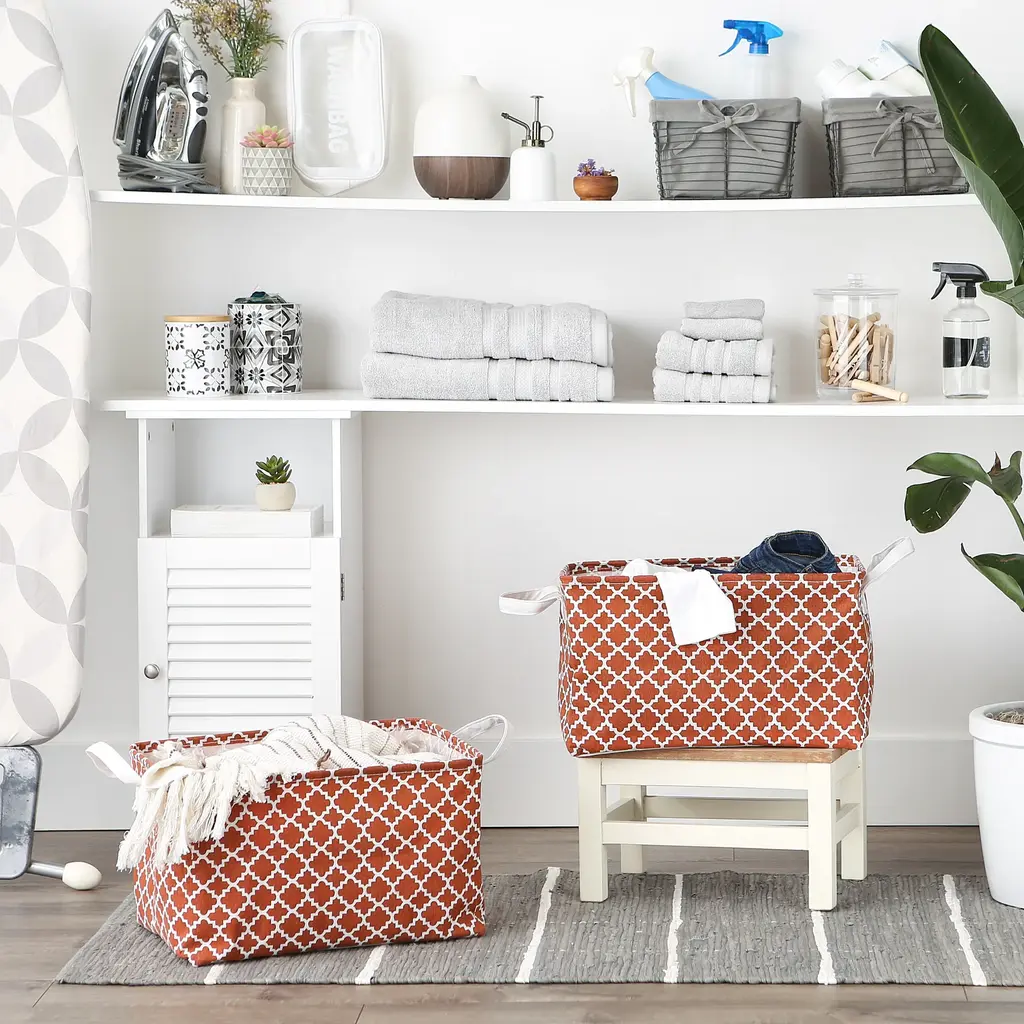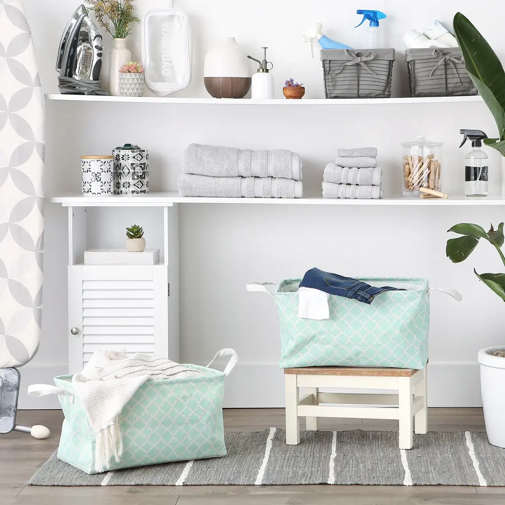 Cotton Polyester Laundry Bin Lattice Rectangle (Set Of 2) - French Blue Lattice - Extra-Large Set, 12.5x17.5x10.5"