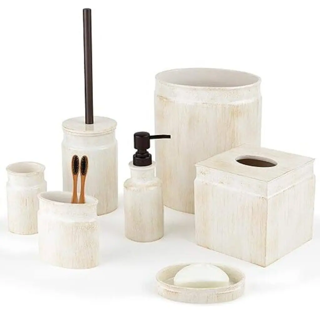 Creative Scents Rustic Luxe Beige Small Bathroom Trash Can - Rustic Luxe - Rustic Luxe - Rustic Luxe