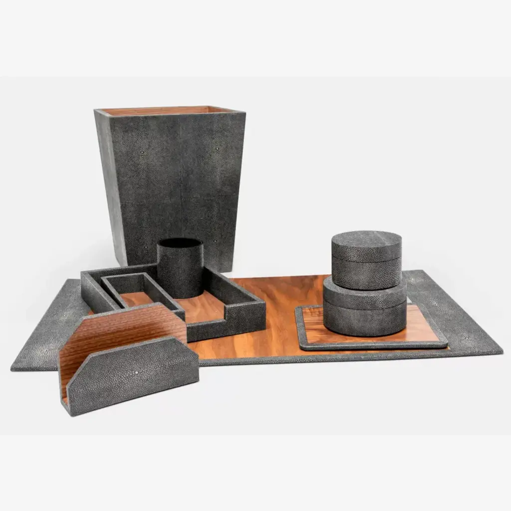 We’ve brought your favorite faux shagreen to the study. With complementary wood veneer accents, our Crosby set is a fetching finish for any desk, bringing organization to a new level of sophistication. Wastebaskets include gray powder coated metal liner. The designers at Pigeon & Poodle believe the details of a home are just as important as the furniture. A gorgeous toothbrush holder or handcrafted canister can elevate an entire bath, the perfect frame can heighten the feel of a whole space, and a good-looking storage basket can be your look’s missing link. With thoughtful design and top-notch craftsmanship, Pigeon & Poodle create home accessories with the care and attention typically reserved for larger pieces of décor.