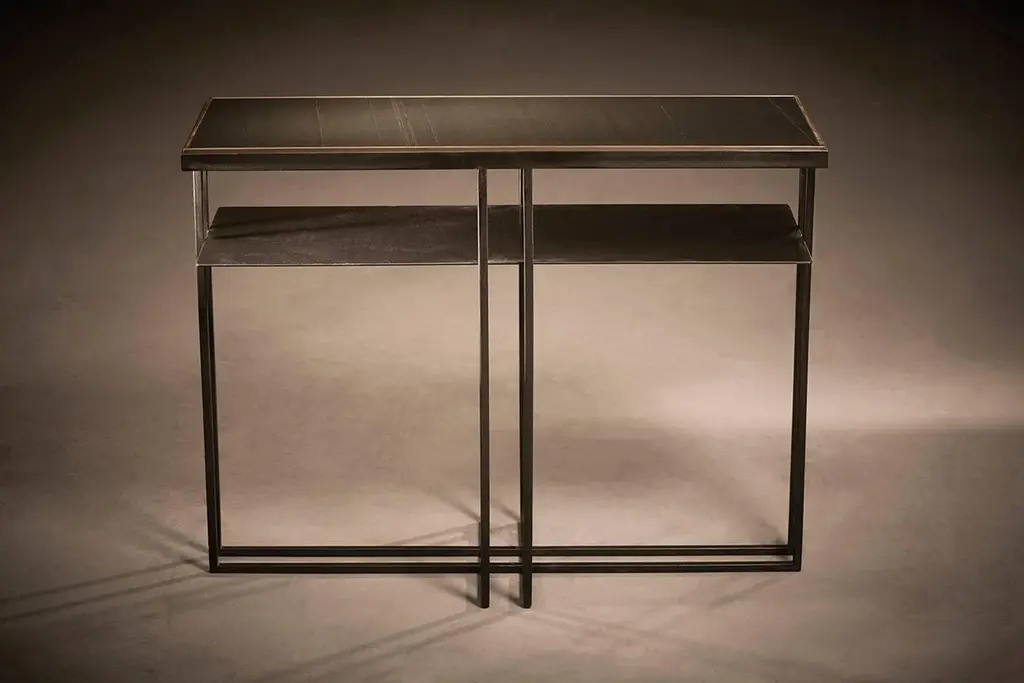 Cross Binate Console — Medium — Blackened Steel Frame — Honed Cumbrian Slate Top