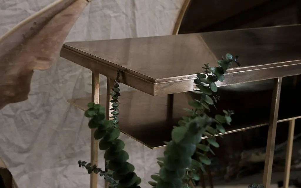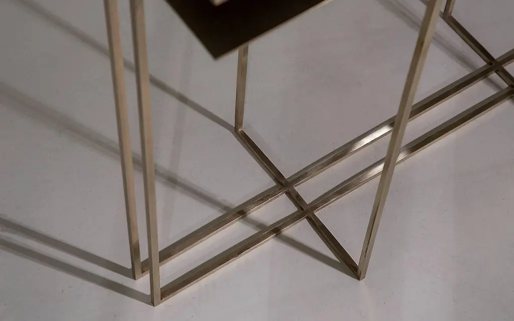 Cross Binate Console Table — Small — All Patinated Brass — Made In Britain