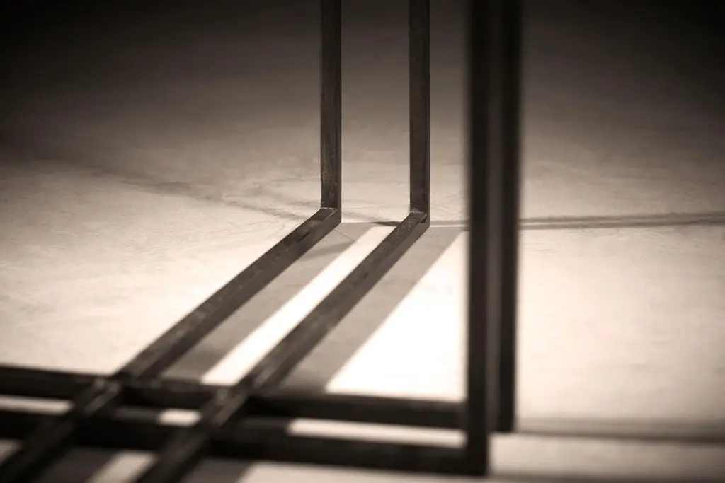 Cross Binate Side Table — Blackened Steel Frame — Honed Cumbrian Slate Top