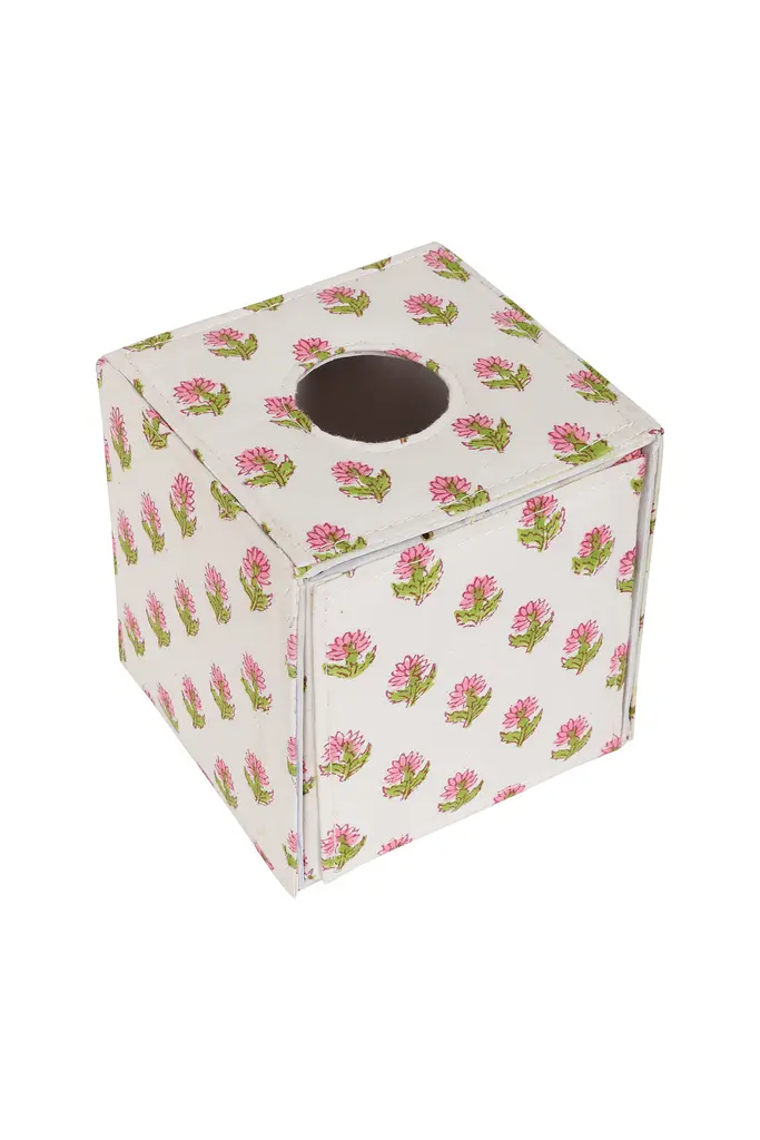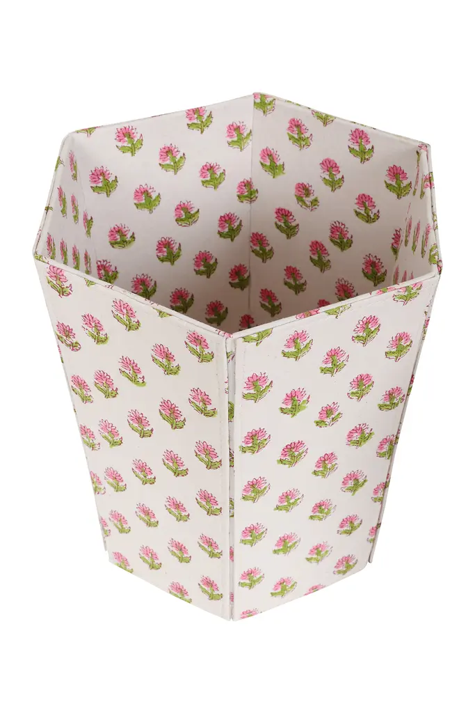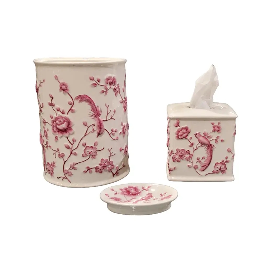 Dana Gibson Mosaic Wastebasket and Tissue Box in PinkMaterial: Painted tole/metalWastebasket: 12”HTissue Box: Standard sizing.