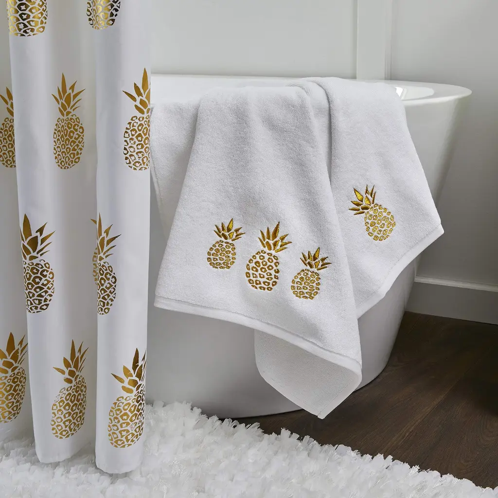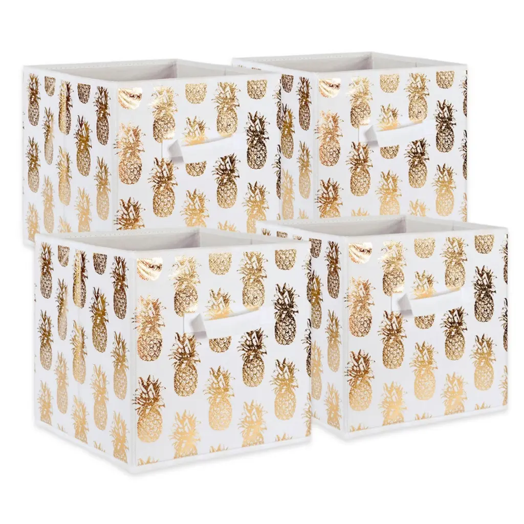 Design Imports Polyester Bin Pineapple Gold Rectangle Medium 16x10x12