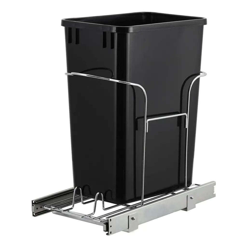 Optimize kitchen storage with this double black pullout trash can featuring two 35 quart bins designed to fit snugly under cabinets. It keeps waste organized and out of sight, maintaining a clutter-free kitchen suitable for home or commercial use. Built for durability with a heavy-duty steel frame and full extension slides, it offers smooth, effortless access without sticking or jamming. Installation is easy using included hardware and clear instructions. This system fits standard cabinets measuring approximately 15 by 22.44 by 21.73 inches. Dimensions: Overall size approx. 15.00 inches (W) x 22.44 inches (D) x 21.73 inches (H) Two bins each with 35 quart capacity Rustproof durable steel frame Heavy-duty full extension slides for smooth operation Fits standard cabinet openings What You Get: One double pullout trash can system with two 35 quart bins Rustproof heavy-duty steel frame and full extension slides Complete mounting hardware and detailed installation guide After-Sales Service: We offer comprehensive assembly instructions and all necessary hardware to ensure easy installation. Our responsive customer support team is available to assist with any questions or concerns, providing a seamless and satisfying setup experience.