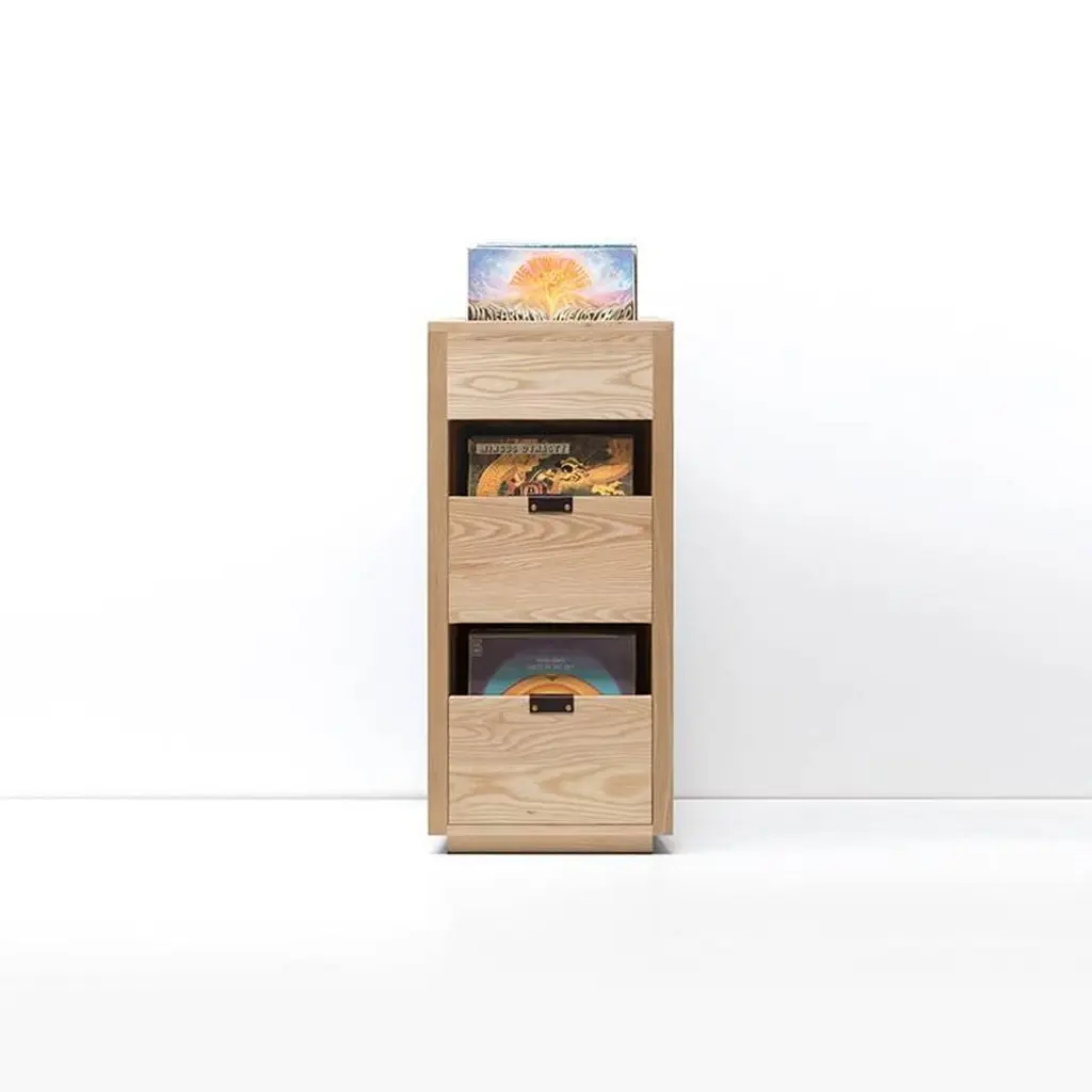 Our Dovetail Vinyl storage cabinets utilize a “file drawer” approach to store LPs and allow you to easily flip through an entire record collection while enjoying a visual display of record cover art across the front of the cabinet. The design incorporates many of the same details found in our Dovetail Record Crates into a cabinet that can be customized for your storage needs. Each drawer is constructed with Symbol’s exposed English dovetail joinery, vegetable tanned leather handles with solid brass hardware, and utilize heavy-duty full extension soft-close under-mount drawer slides. All of our cabinets are produced in the United States using sustainably harvested solid hardwoods for both strength and beauty.Features:- Store up to 270 LPs- Dovetail drawer boxes with full-extension soft-close undermount drawer slides- Vegetable tanned leather handles with solid brass hardware- Solid wood construction.