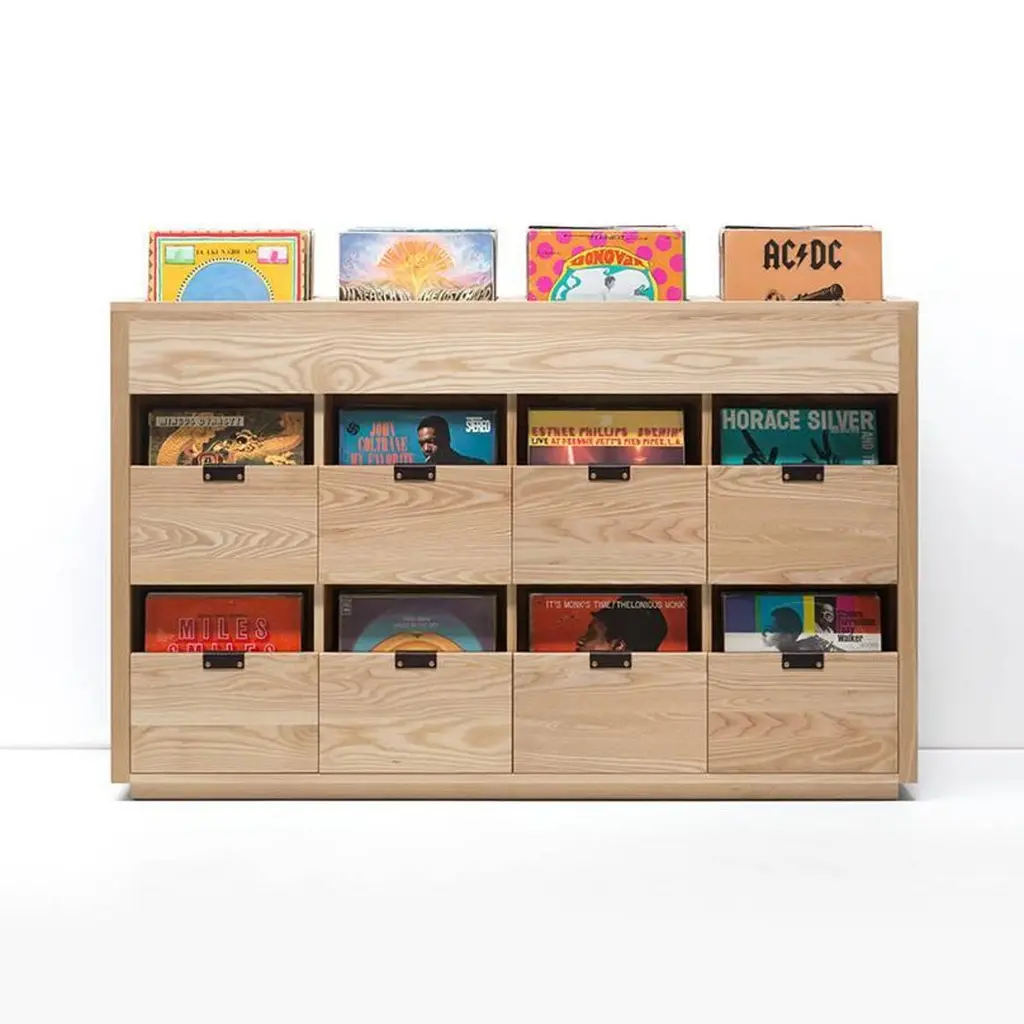 Dovetail 4 X 2.5 Vinyl Storage Cabinet Solid Natural Walnut With Flip Bins