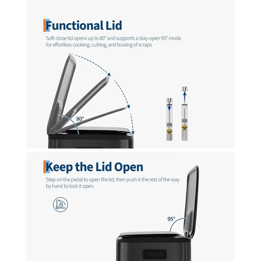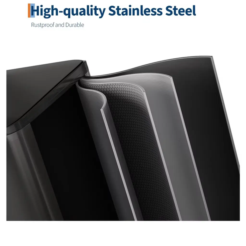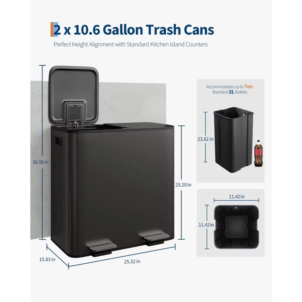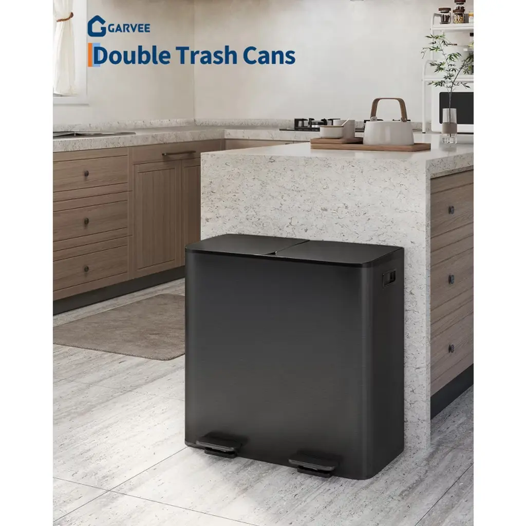 Say goodbye to clutter and hello to efficient organization! This dual-compartment stainless steel trash can seamlessly blends modern design with practical functionality, revolutionizing your cleaning routine. It's the perfect choice to enhance both the style and sustainability of any space, from busy kitchens and elegant dining rooms to private bathrooms.Specification:Material: Stainless SteelDimension: 25.32x15.83x38.58 inchVolume:30L/40LColor: Black, Gray, WhiteProduct Details:Dual Compartment Design: Features two separate compartments for easy waste and recycling sorting at the source, keeping your space tidy.Premium Stainless Steel Material: Constructed from durable, rust-resistant stainless steel that wipes clean easily for long-lasting use.Soft-Close Lid: Equipped with a quiet-close lid mechanism for smooth and silent operation.Convenient Foot Pedal: The wide foot pedal allows for hands-free, hygienic lid operation, ideal for busy kitchens.Removable Inner Buckets: Includes lift-out buckets in each compartment for effortless waste disposal and quick cleaning.Multi-Scenario Application: Its stylish design makes it perfect for various spaces like the kitchen, dining room, or bathroom.