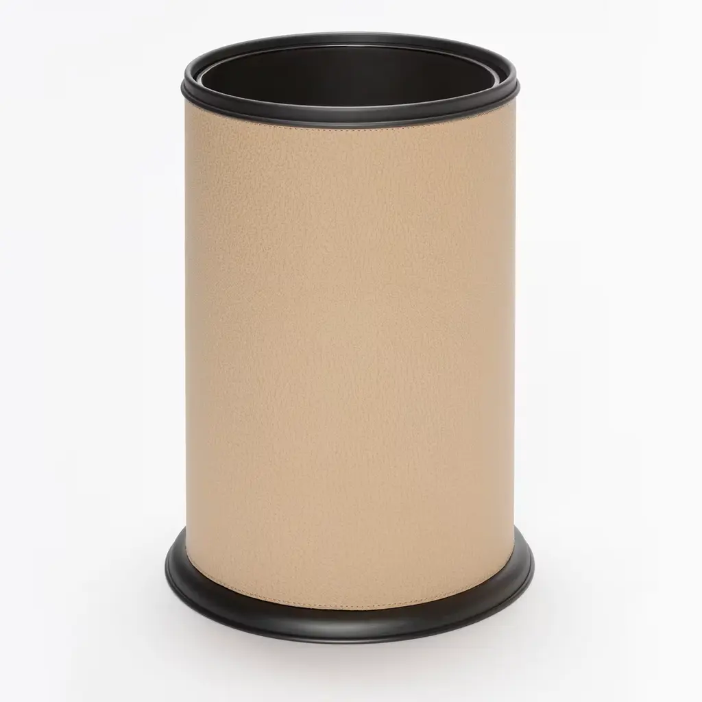 The Dubai bathroom collection features a series of articles with a fine leather-covered metal structure with different finishes of choice. The collection boasts a series of sinuous sculptural volumes that take inspiration from Oriental architecture. Partially leather-covered metal structure provided with removable inner plexiglass container. Non-slip waterproof rubber base underneath. Metal finishes available: chrome / bronze / brass / shiny gold.
