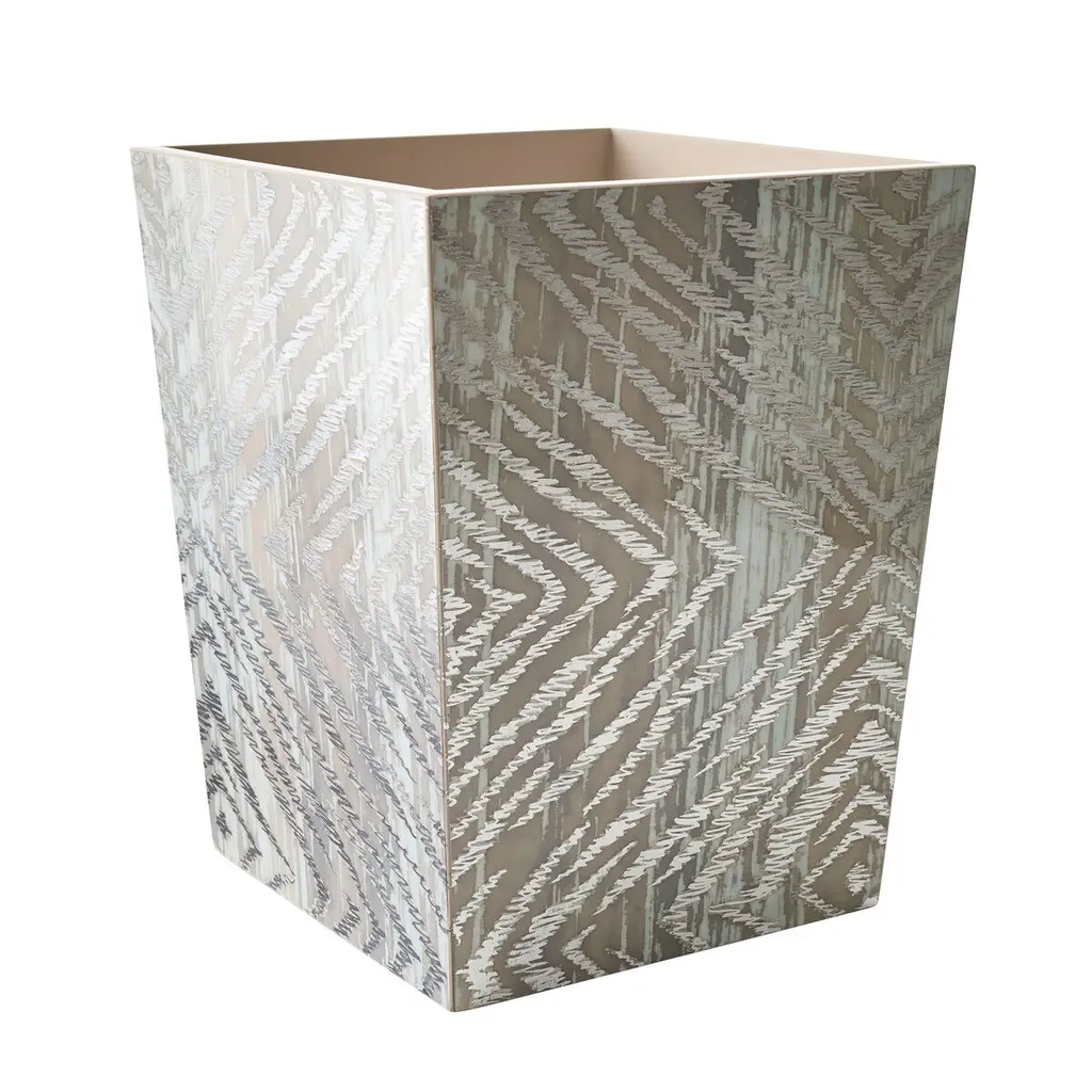 Add a touch of artistic flair to your home with the Dusen Dusen Pattern Waste Bin, a striking blend of functionality and design. Designed by Ellen Van Dusen who is known for her surprising color combinations, this waste bin features a pattern inspired by the flow of rivers, creating a sense of tranquility and harmony in your environment. Whether you place it in your office, bedroom, or living room, the Dusen Dusen Pattern Waste Bin effortlessly elevates your space. Made of tinplate. Keep in a cool, dry place. The Dusen Dusen Patterned Waste Bins are not recommended for storing wet or damp materials. It measures 10.5h x 8.25"diam.