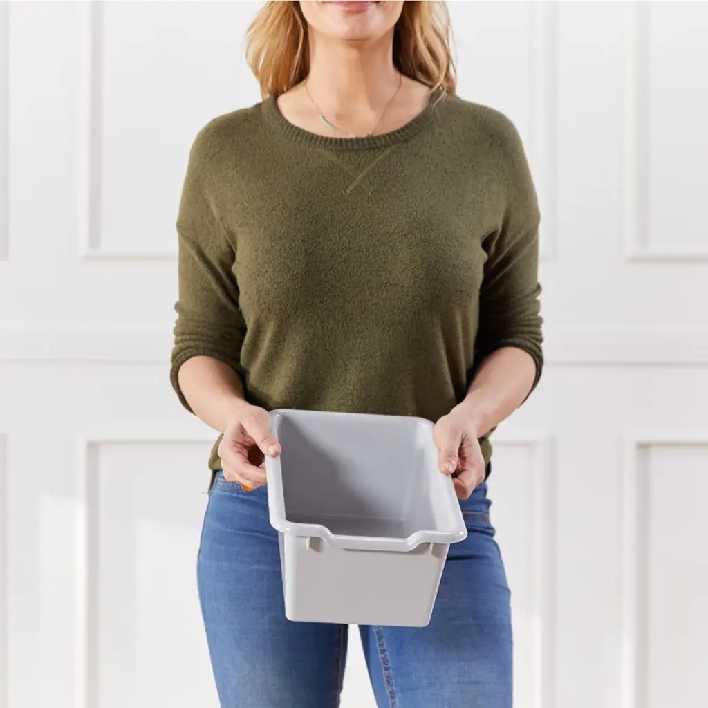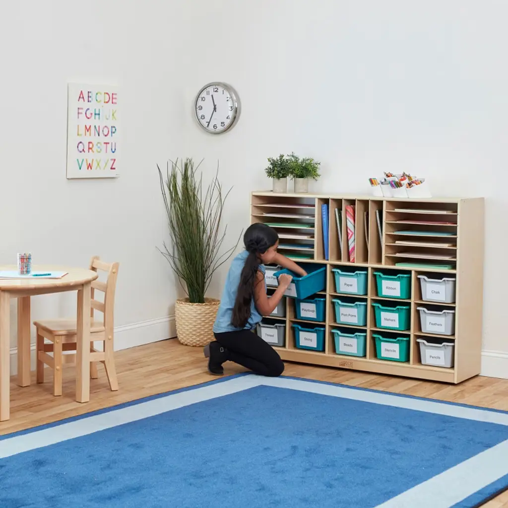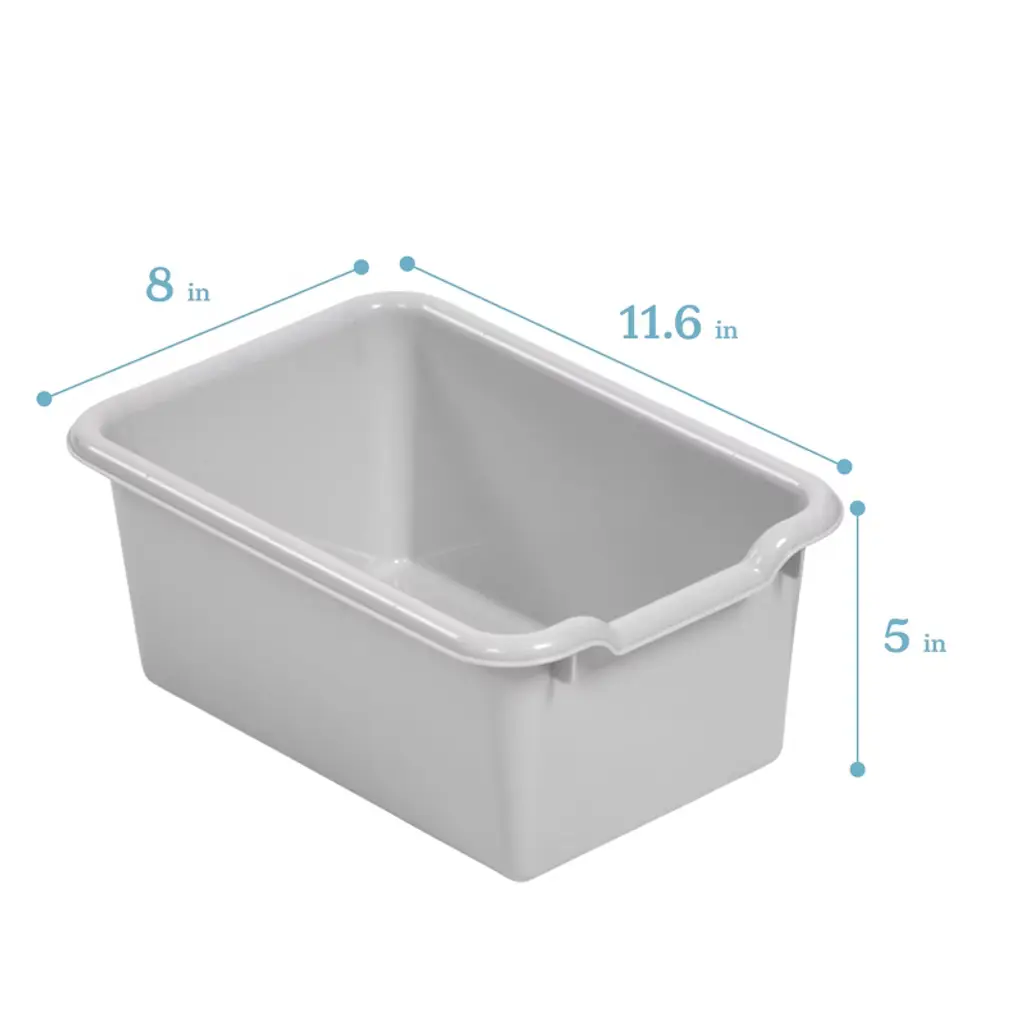 Keep your classroom and home organized, tidy, and efficient with ECR4Kids Scoop Front Storage Bins. The sturdy plastic bins are designed for everyday use to keep small items contained off the floor. Teachers, educators, and parents can utilize bins to store books, toys, manipulatives, and games. The open bin design displays and provides easy access to contents. Organize stories and label bins by reading level, theme, or holiday, encouraging children to independently select their favorite story and clean up during playtime. Personalize trays in classroom cubbies for children to store art projects, individual items, homework, and more. The Scoop Front Bins provide a flexible storage solution with endless possibilities for use from the garage to the kitchen pantry, or nursery. Durable plastic bins feature rounded edges, an easy-to-grasp scoop front handle, and a curved interior to simply remove contents. Lightweight bins are easy to pick up and carry, transporting from a storage cabinet to a play space. Bins nest to save space, and built-in stack supports prevent locking when empty. Use as standalone storage or pair with ECR4Kids storage lockers, cubby units, or tray cabinets; sold separately. The one-piece all plastic design comes fully assembled.